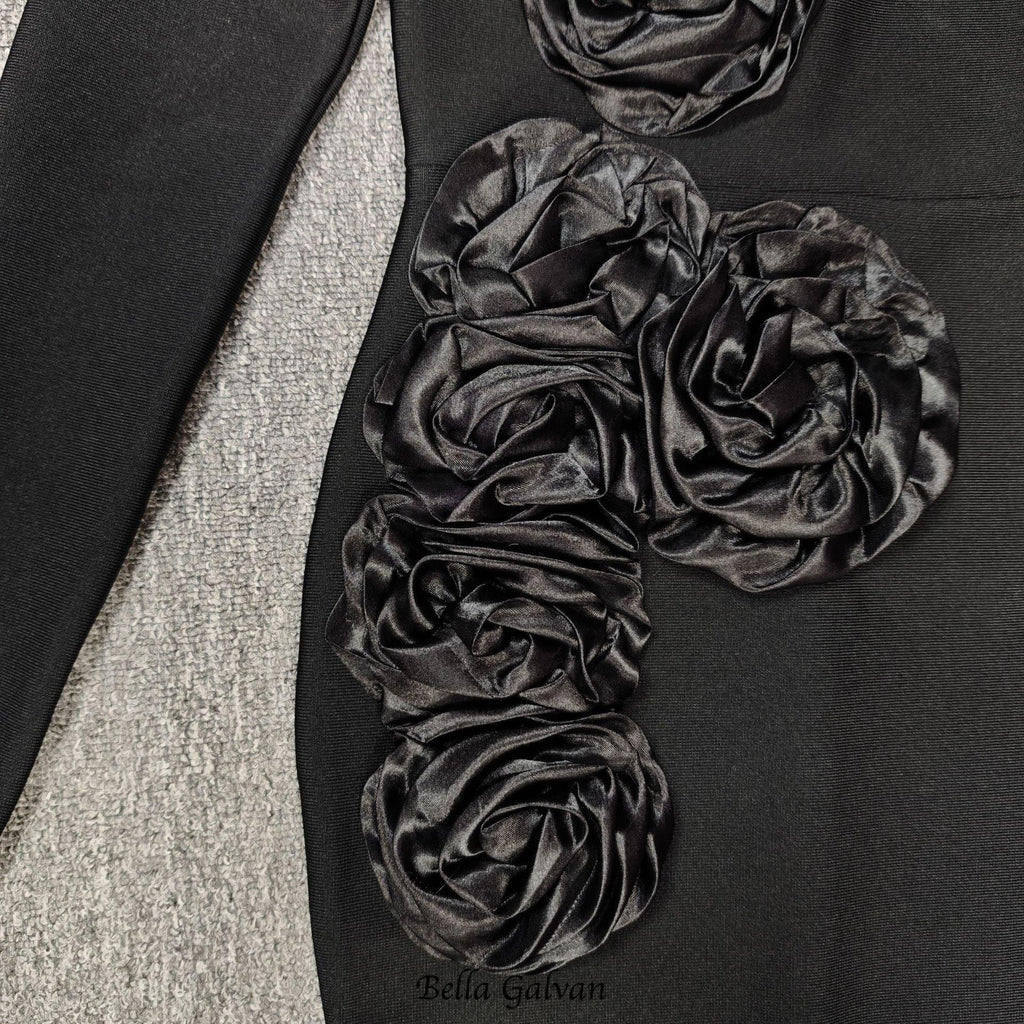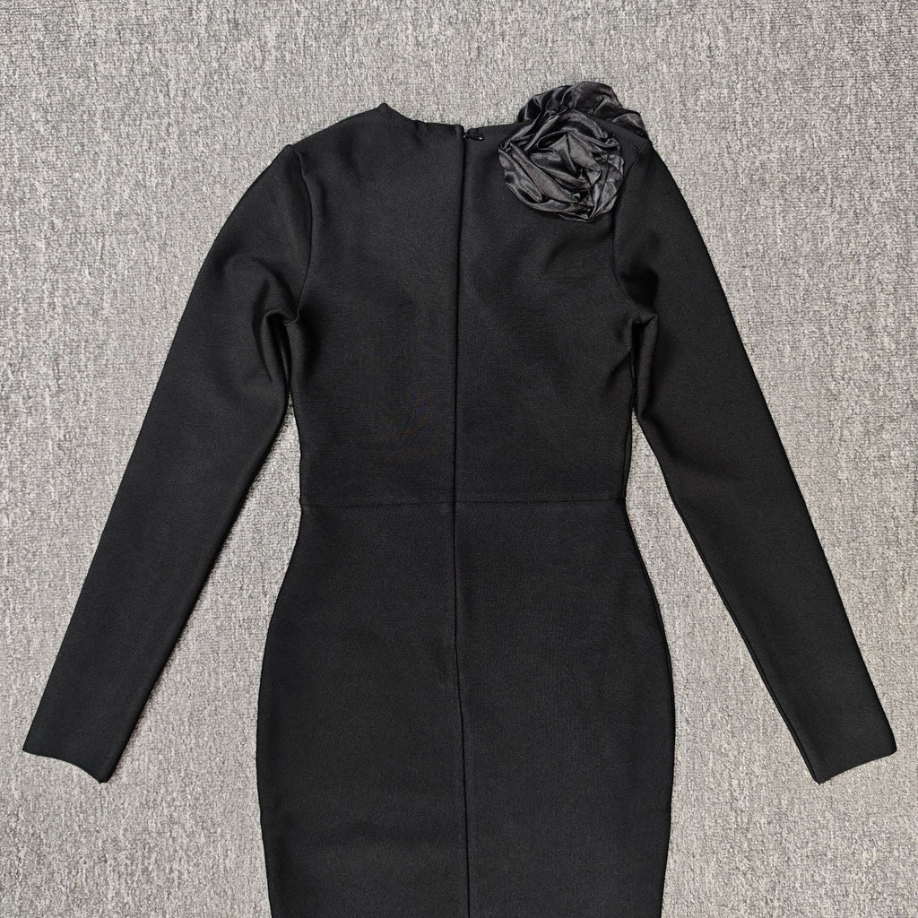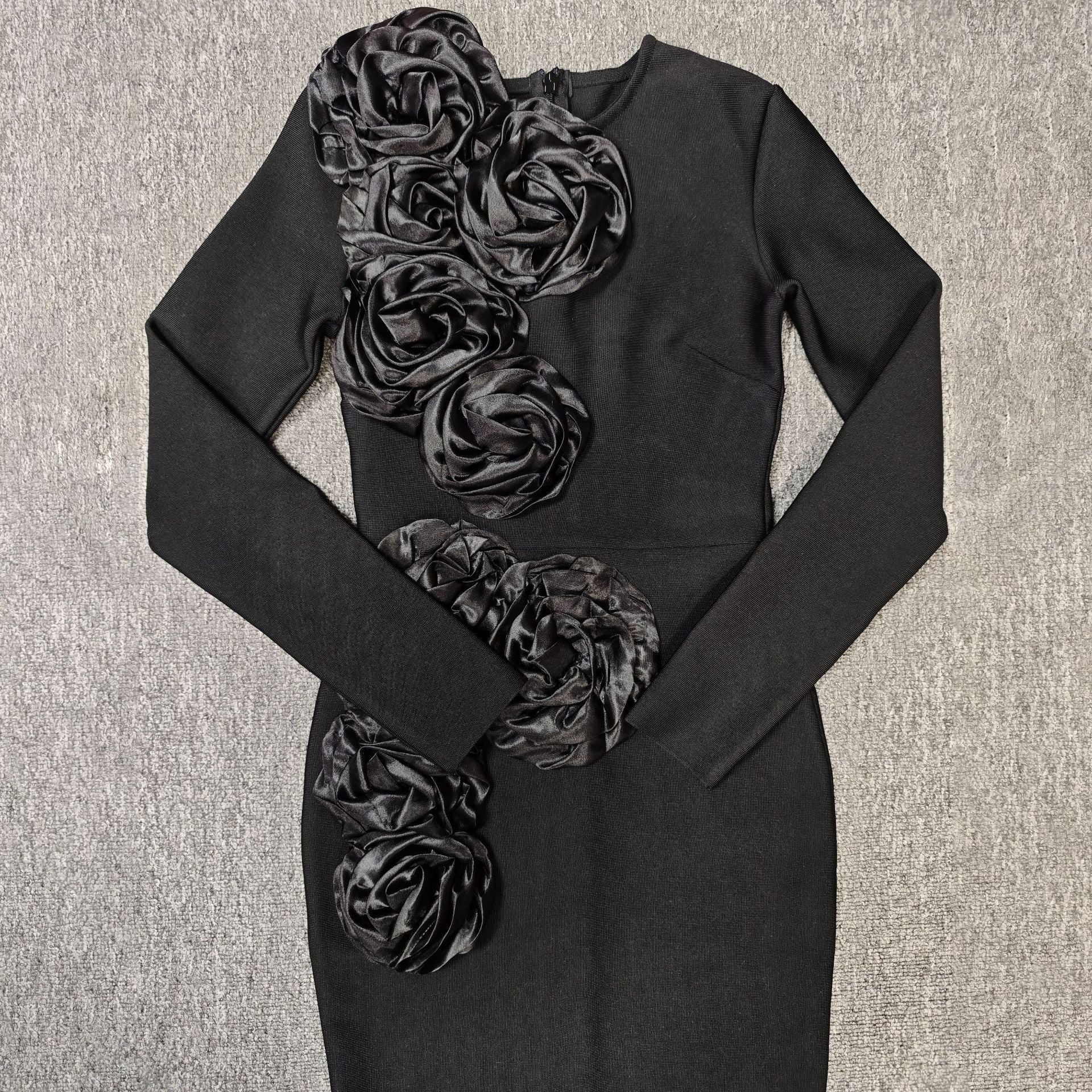 sally 3D Flower Decorative Bandage maxi Dress in black