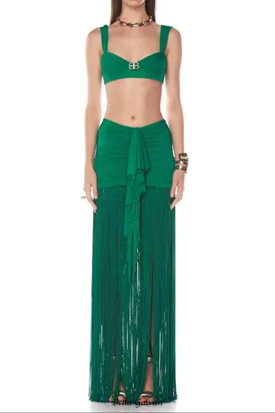 Tyonska Fringe Ruched Two Piece Set