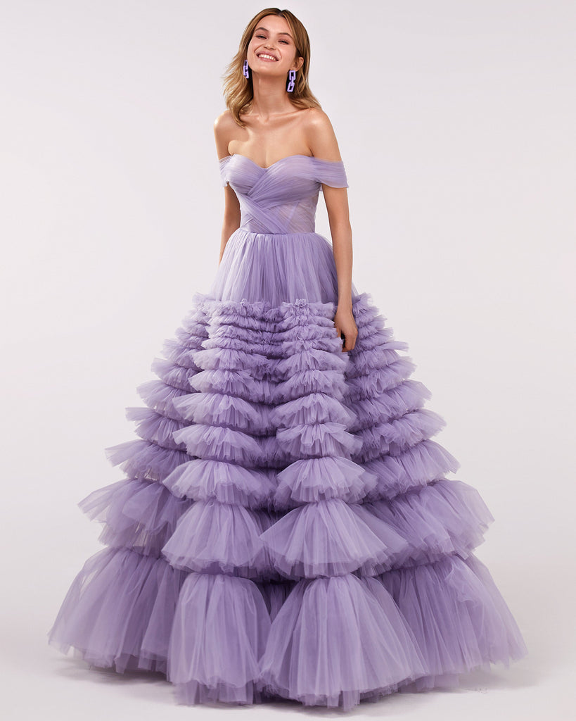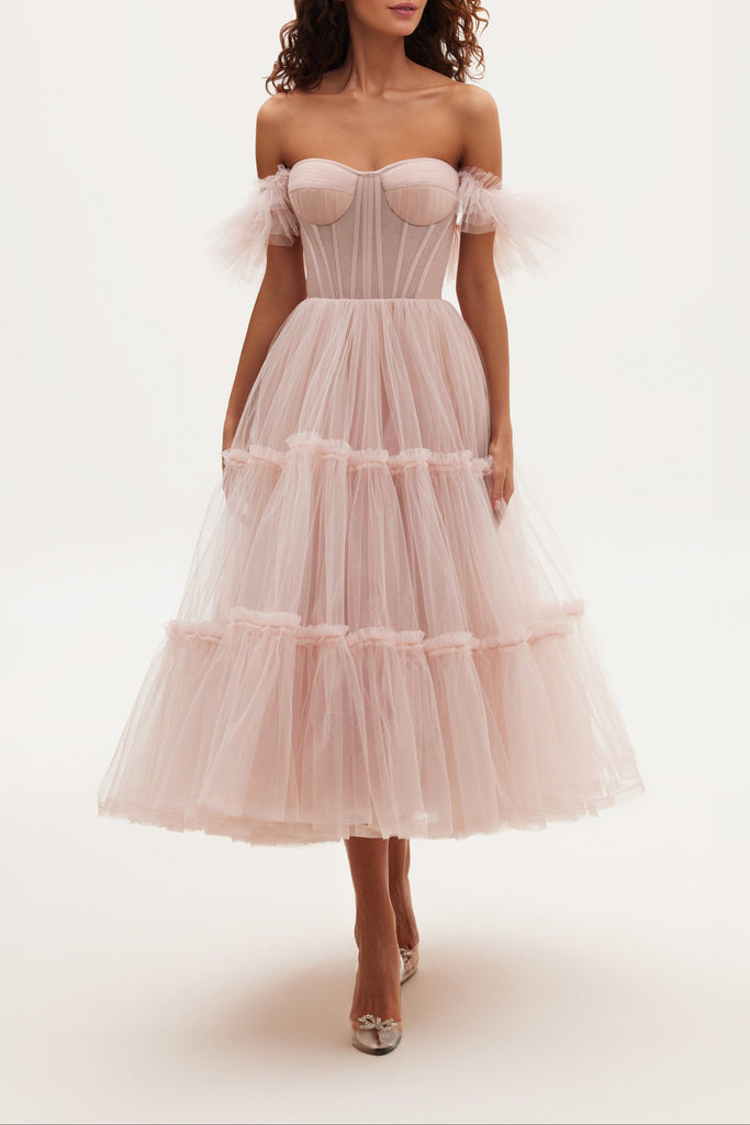 Misty Rose Strapless Puffy Midi Tulle Dress