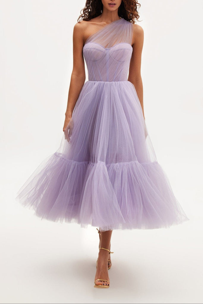Misty Rose One-Shoulder Cocktail Tulle Dress