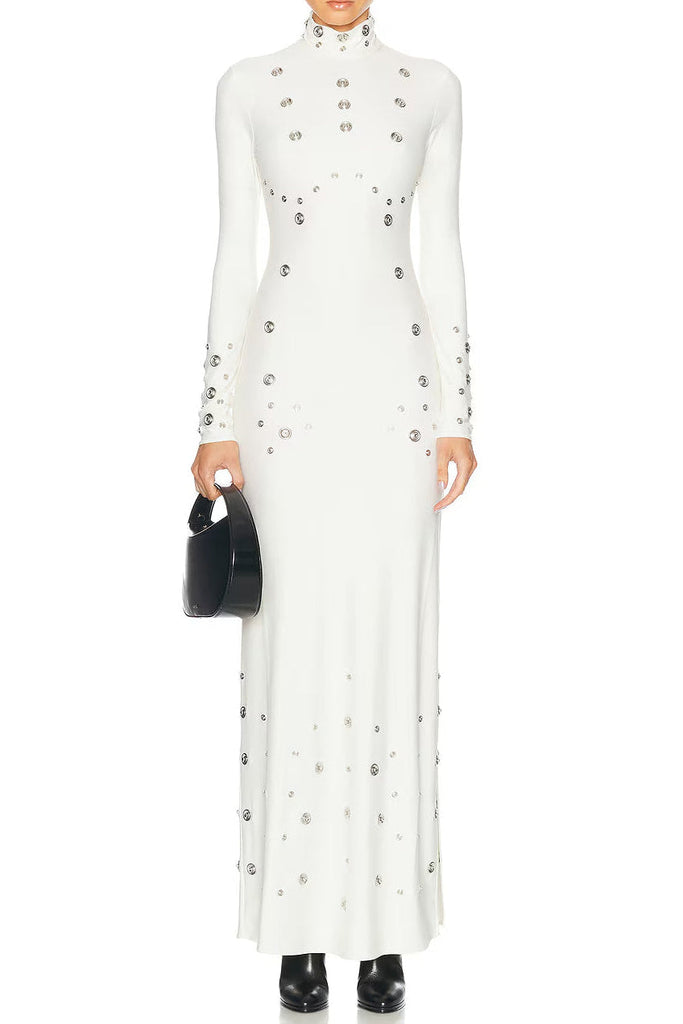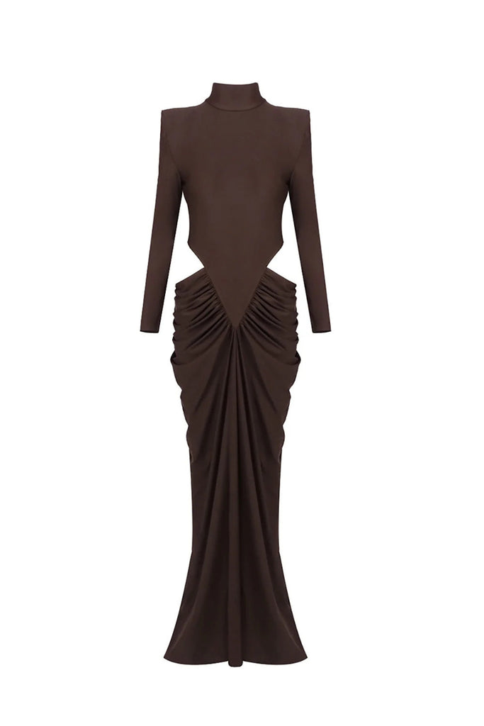 jacqueline Turtleneck Long Sleeve Cutout bodycon Gown in brown
