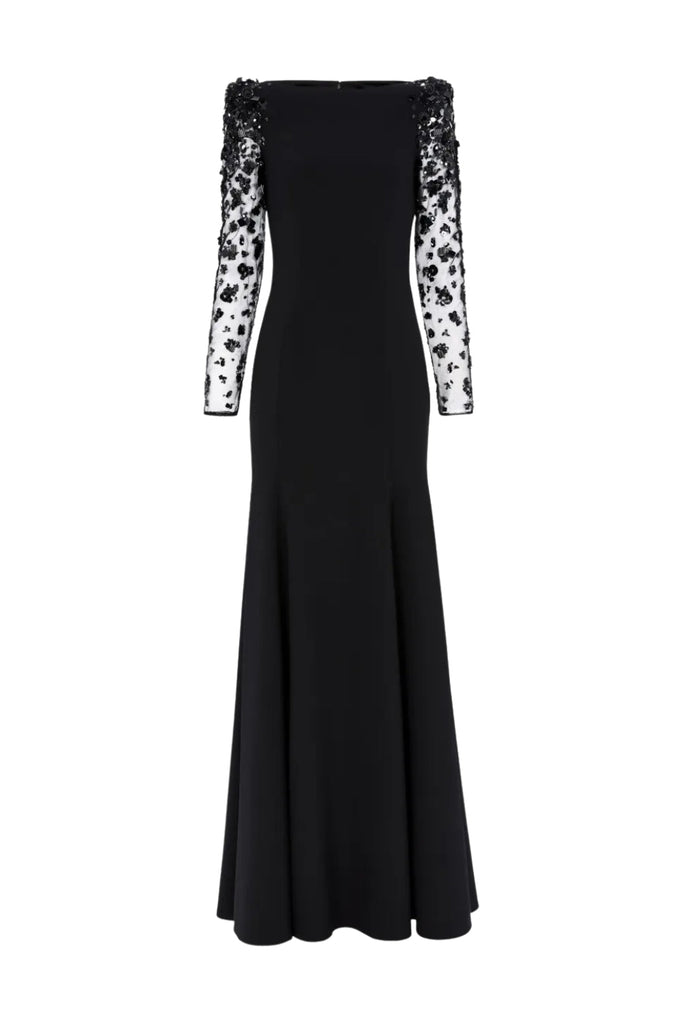 Ocean Wave Sheer Sleeves Maxi Tulle Dress