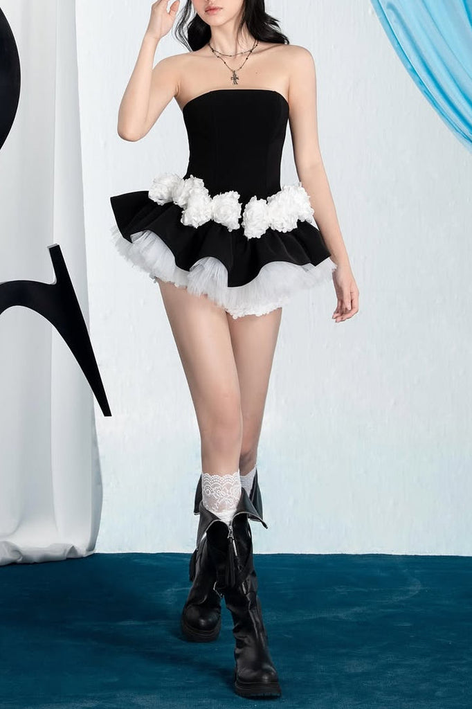 Pink Princess layer ruffle midi floral Embroidery strapless Dress