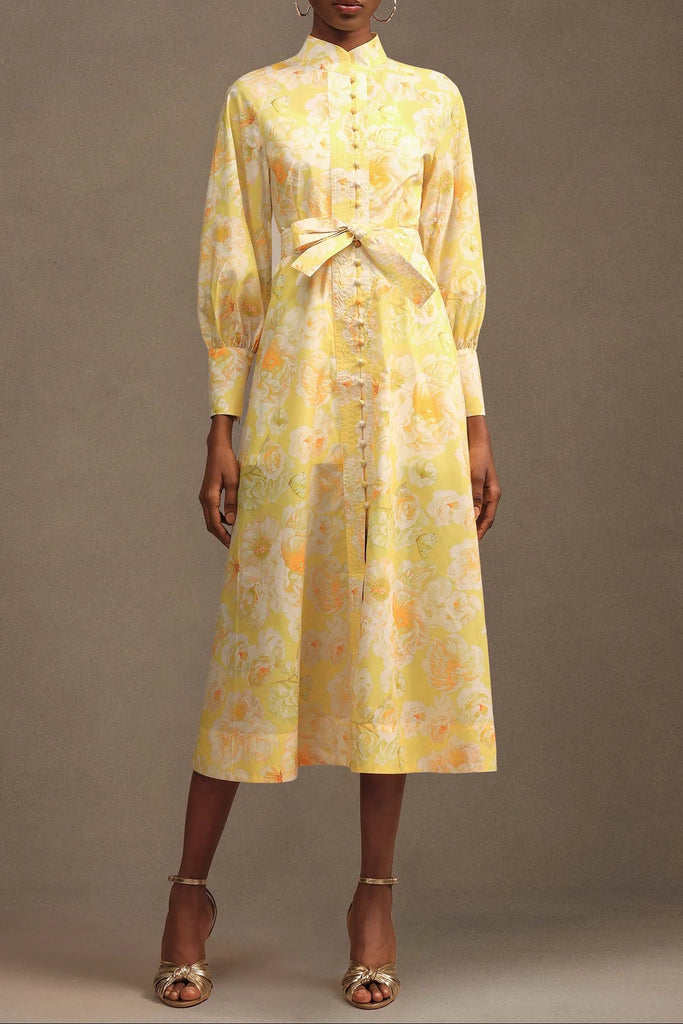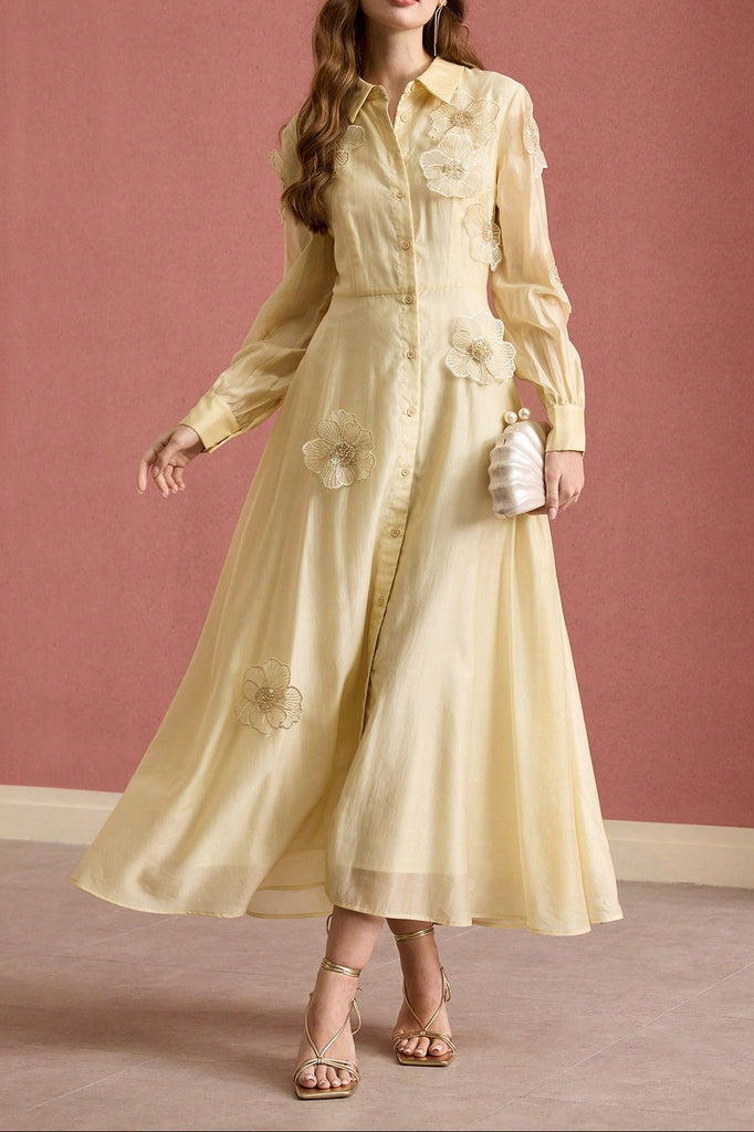 xaviera Long Sleeve Floral Printed Chiffon Maxi Dress in yellow