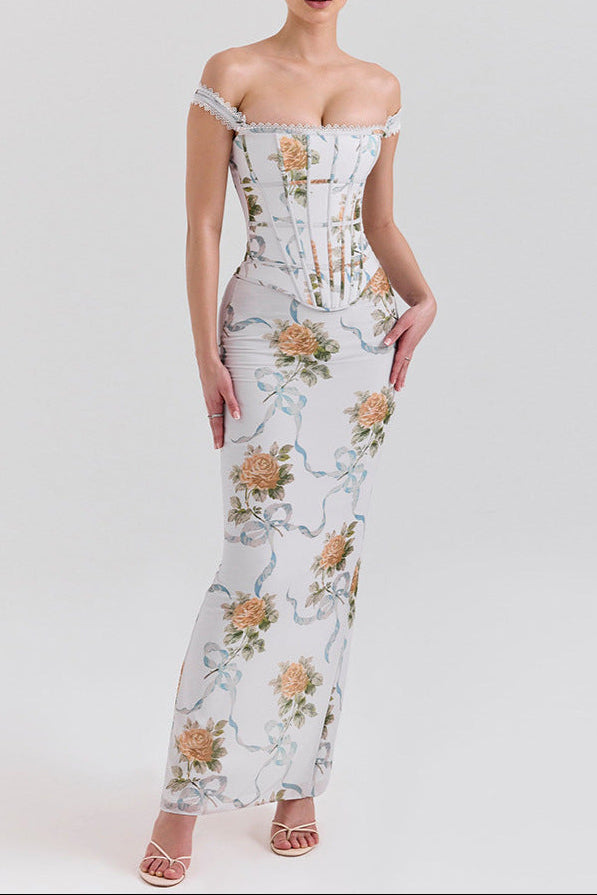 phoenix white Floral Print Fitted Corset Maxi Dress