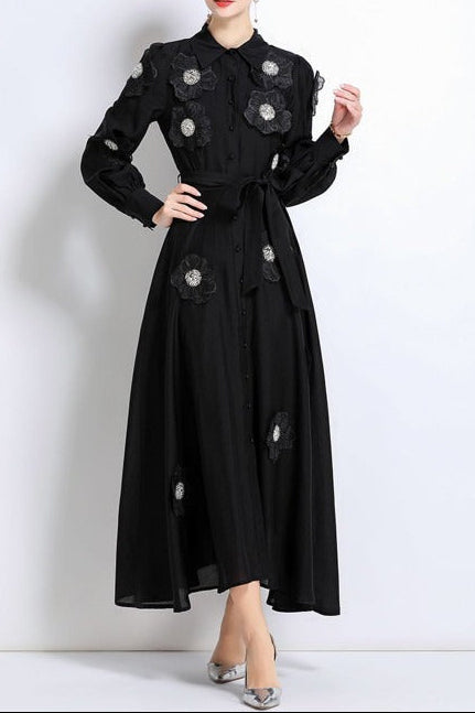 rita black 3D Floral Rhinestone Bodycon Slit Maxi Bandage Dress
