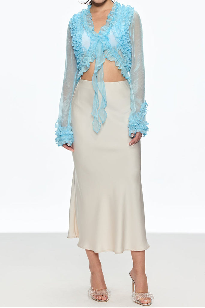 RHINESTONE TASSEL DENIM CROPPED TOP IN BLUE