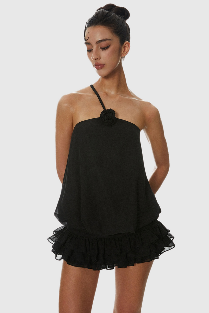 Elevate your wardrobe with the Dellesa Floral One Shoulder Top in black. This elegantly designed piece features a graceful one-shoulder silhouette adorned with subtle floral detailing, offering a refined and modern look. Perfect for sophisticated occasions, its sleek black hue enhances versatility while the tailored fit ensures a flattering shape. Pair it effortlessly with tailored trousers or a chic skirt for a polished ensemble.