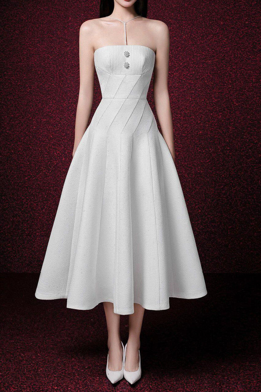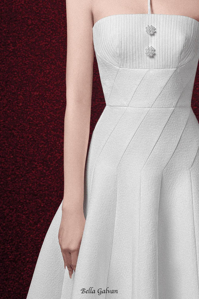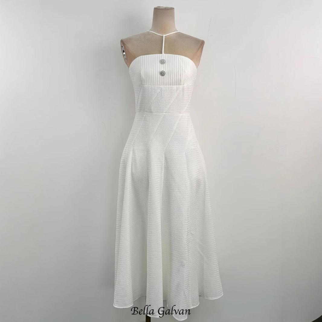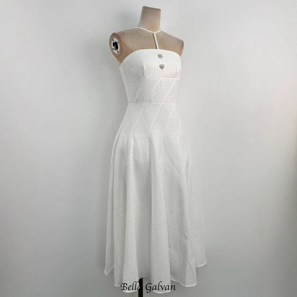 This off-shoulder sleeveless jacquard midi dress in apricot combines elegant design with refined craftsmanship. The jacquard fabric offers subtle texture and durability, while the off-shoulder neckline highlights the collarbone for a sophisticated silhouette. Its midi length provides a balanced, versatile look suitable for both formal and semi-formal occasions. Perfect for those seeking a timeless piece with expert tailoring and a flattering fit.
