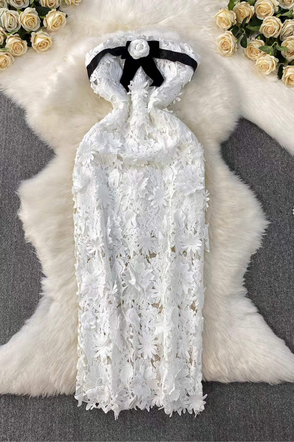 Step into sunshine with the Strapless Flower Embroidery Maxi Dress In White! This breezy, strapless design lets you show off your shoulders while delicate floral embroidery adds a touch of whimsy. Flowing to the floor, it’s perfect for twirling through garden parties or dancing under the stars. Light, airy, and effortlessly charming, this dress brings playful elegance to every occasion.