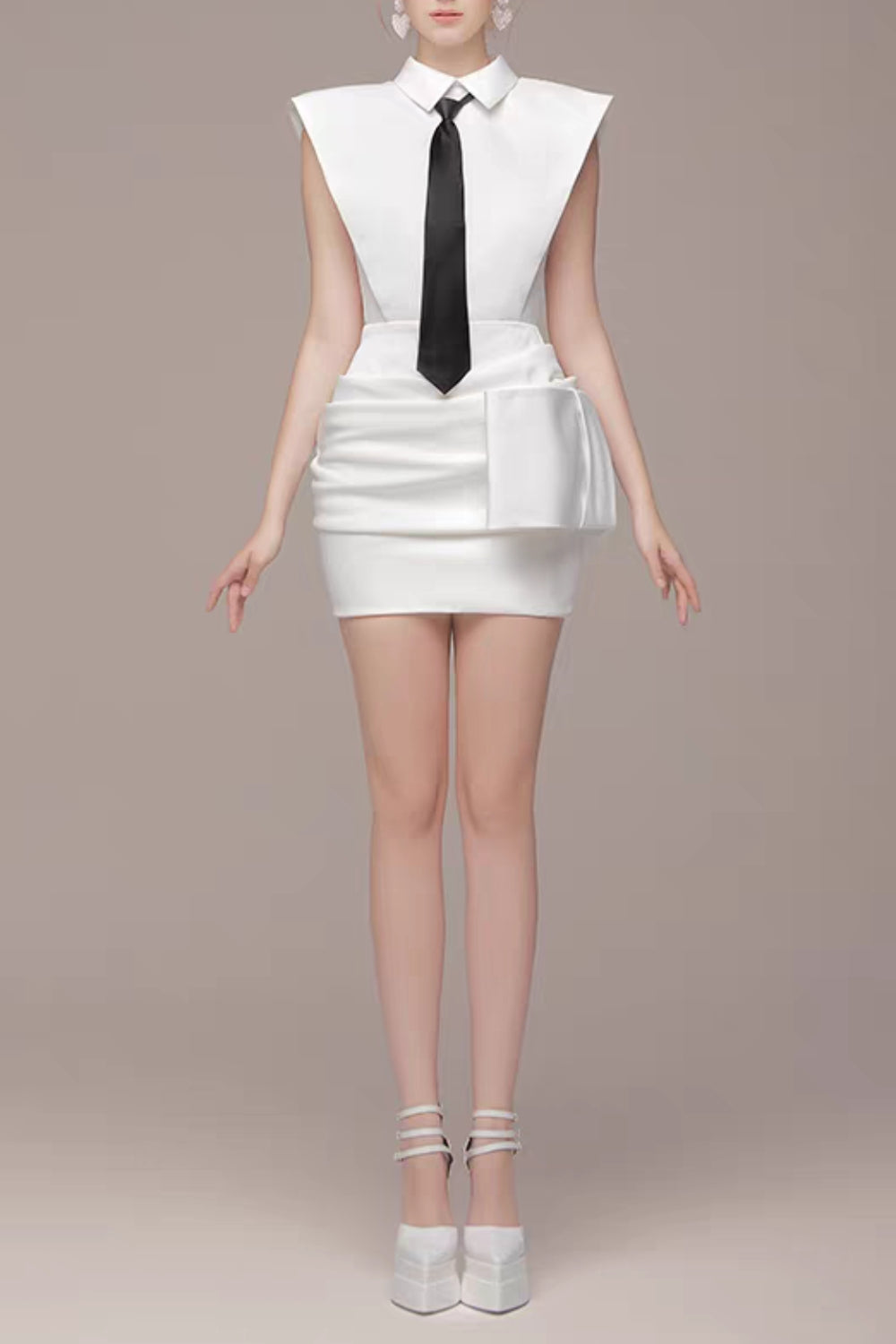 White Bowknot Mini Dress With Necktie