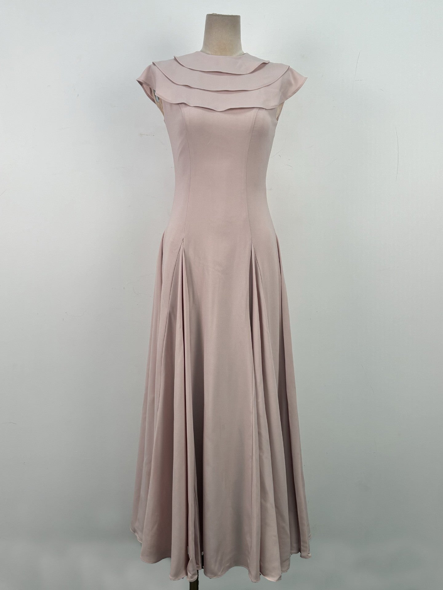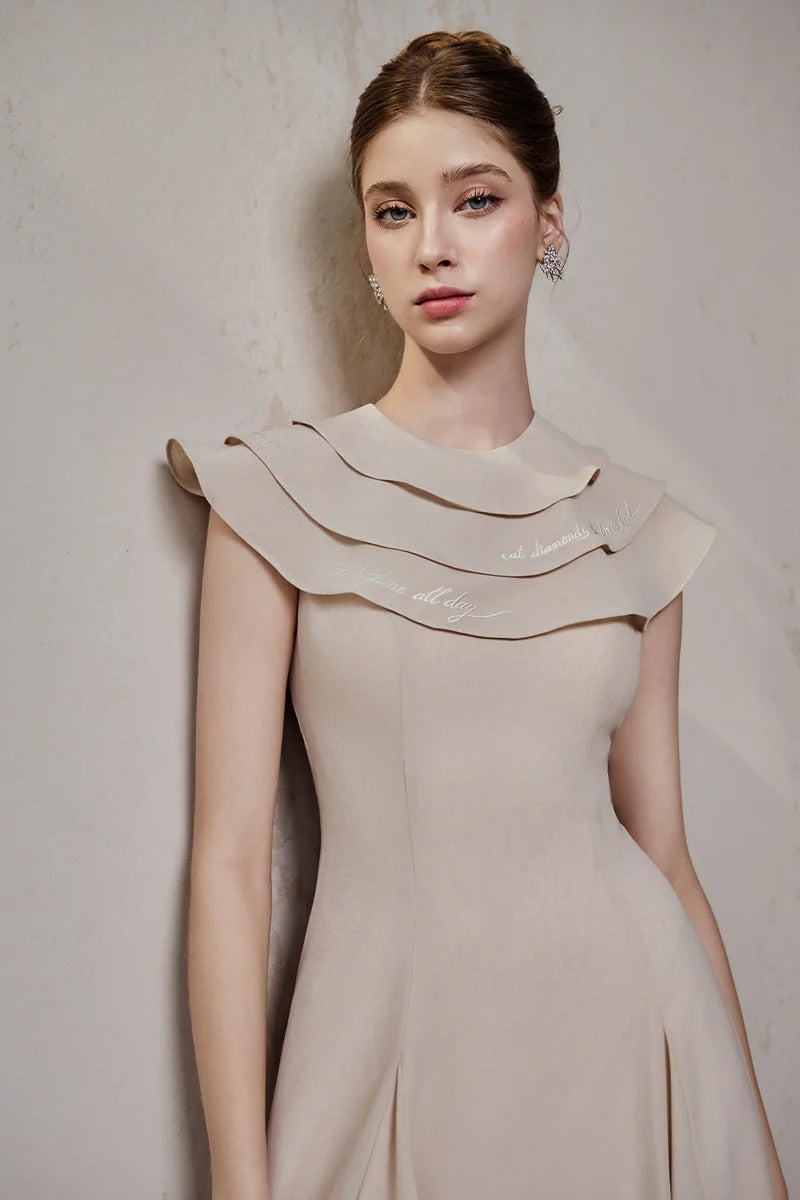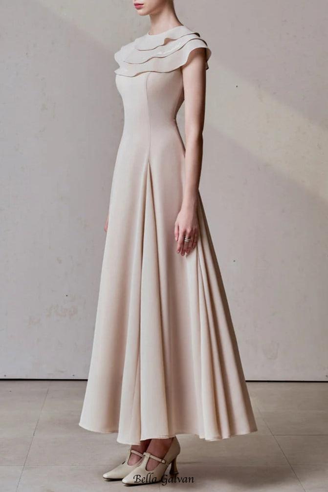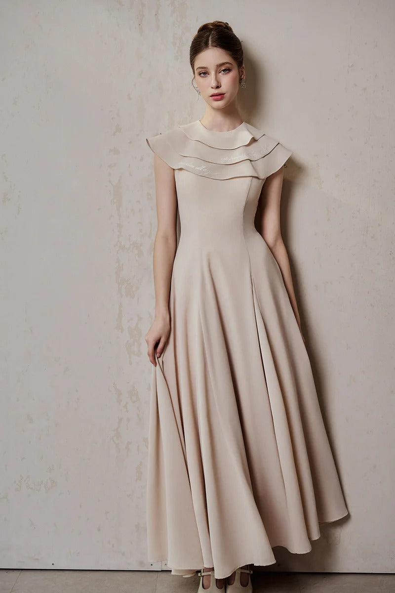 A-line Jewel Neck Viscose Ankle maxi Dress in beige