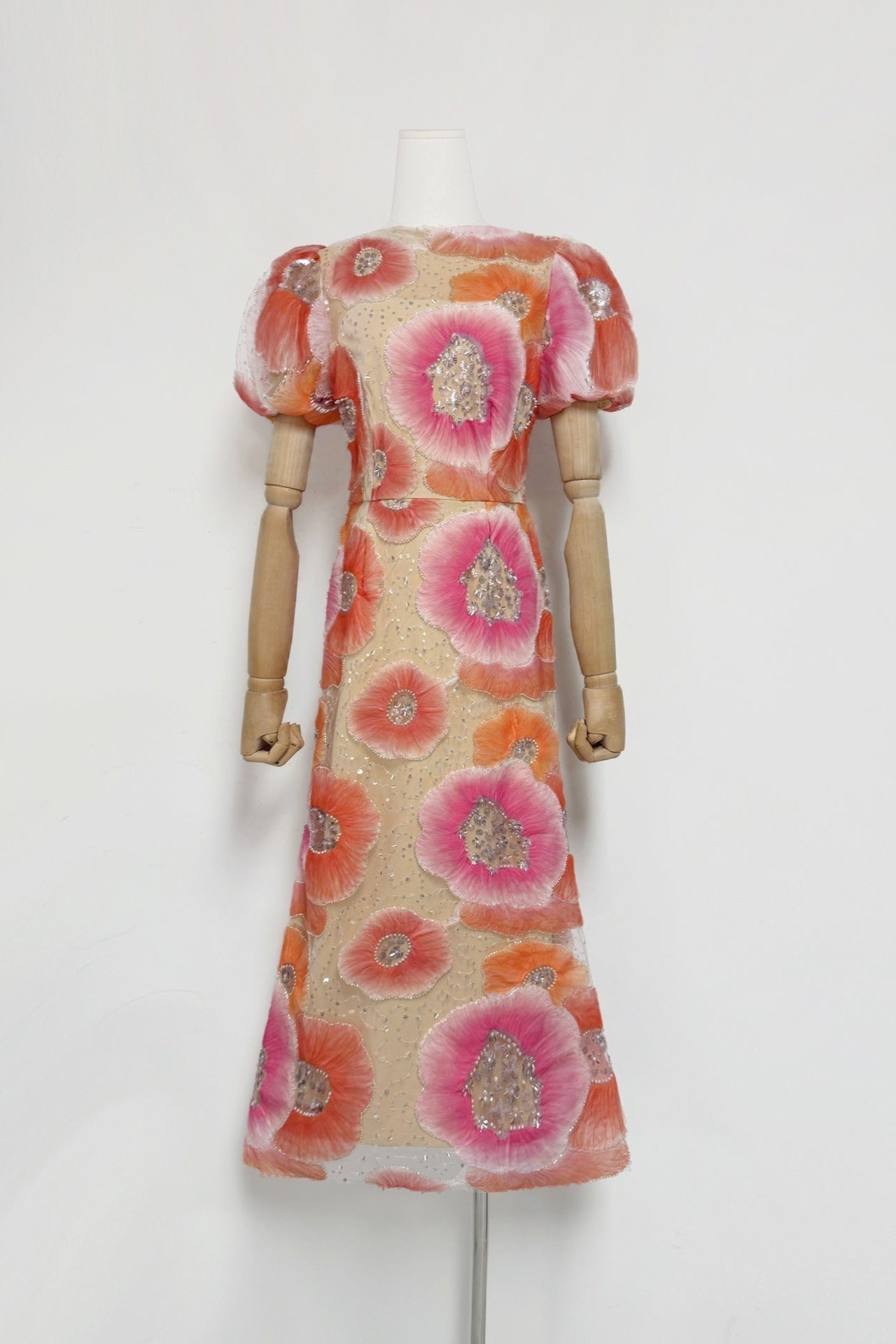 The Lydia Puff Sleeve Floral Midi Dress in Pink offers a refined silhouette with its delicate puff sleeves and flattering midi length. Crafted with attention to detail, its floral pattern adds a sophisticated yet feminine touch, perfect for both daytime gatherings and elegant evening occasions. The dress combines style and comfort, making it a versatile addition to any wardrobe.
