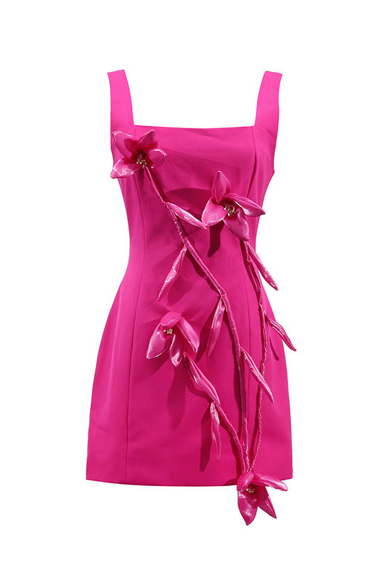Bethany 3d flower sleeveless Mini Dress In Purple
