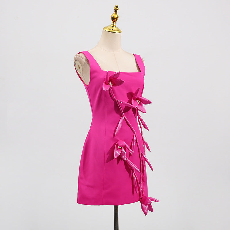 Elevate your wardrobe with the Bethany 3D flower sleeveless mini dress in purple. This sophisticated piece features intricate three-dimensional floral embellishments that create visual depth and texture. The sleeveless silhouette offers versatility for layering or wearing alone, while the mini length showcases your legs with confidence. Crafted with attention to detail, this purple statement dress transitions effortlessly from daytime events to evening occasions.