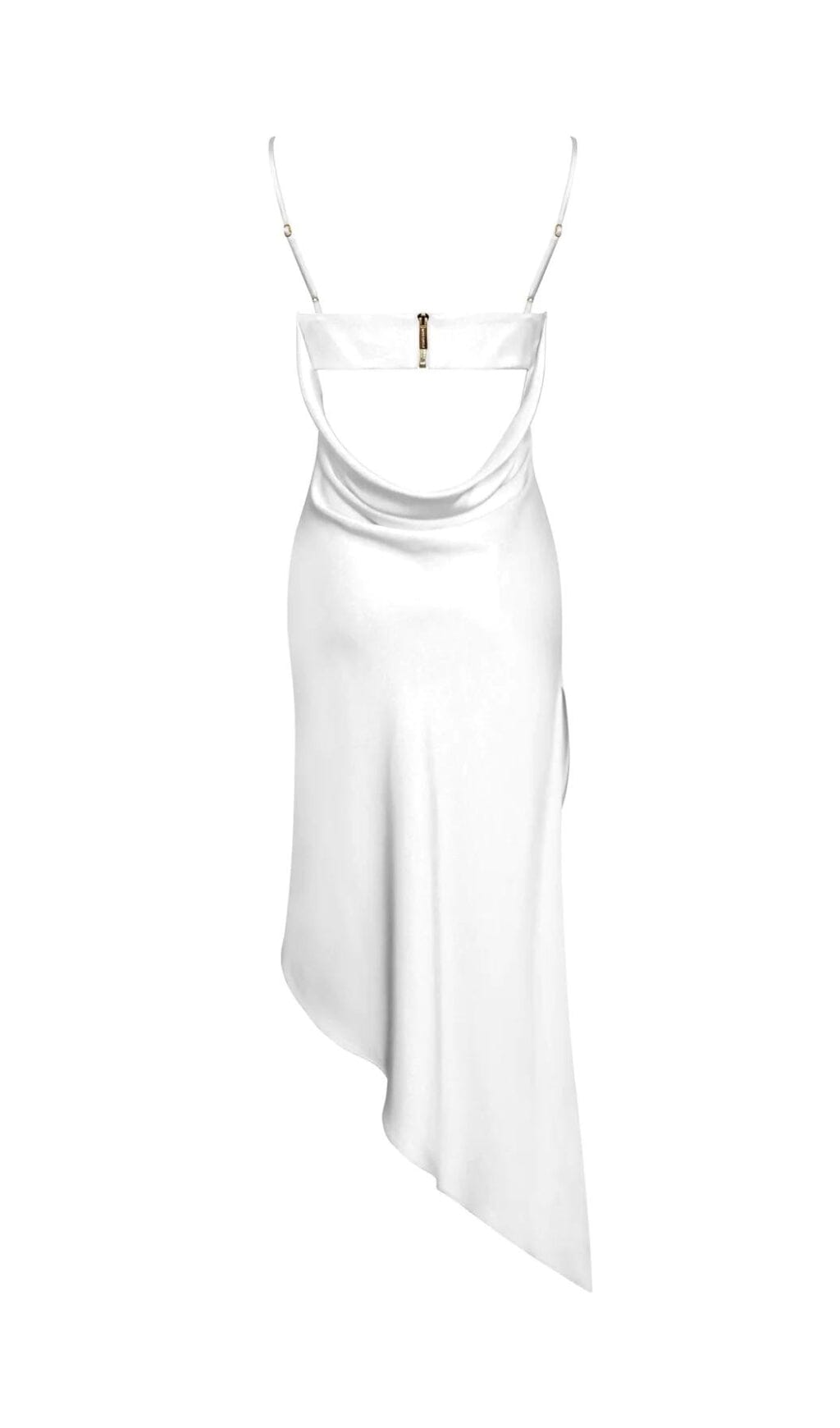 Ready to make a statement? Look no further than this gorgeous white satin midi dress! With a flattering draping design, the perfect amount of coverage and sophisticated shine, it'll have you feeling like a million bucks!