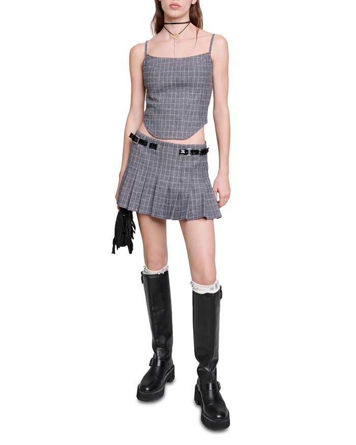 This top combines the classic print of checkered patterns with the bold and flattering silhouette of a corset, giving you a unique and stylish look. Perfect for adding some edge to your wardrobe!"
