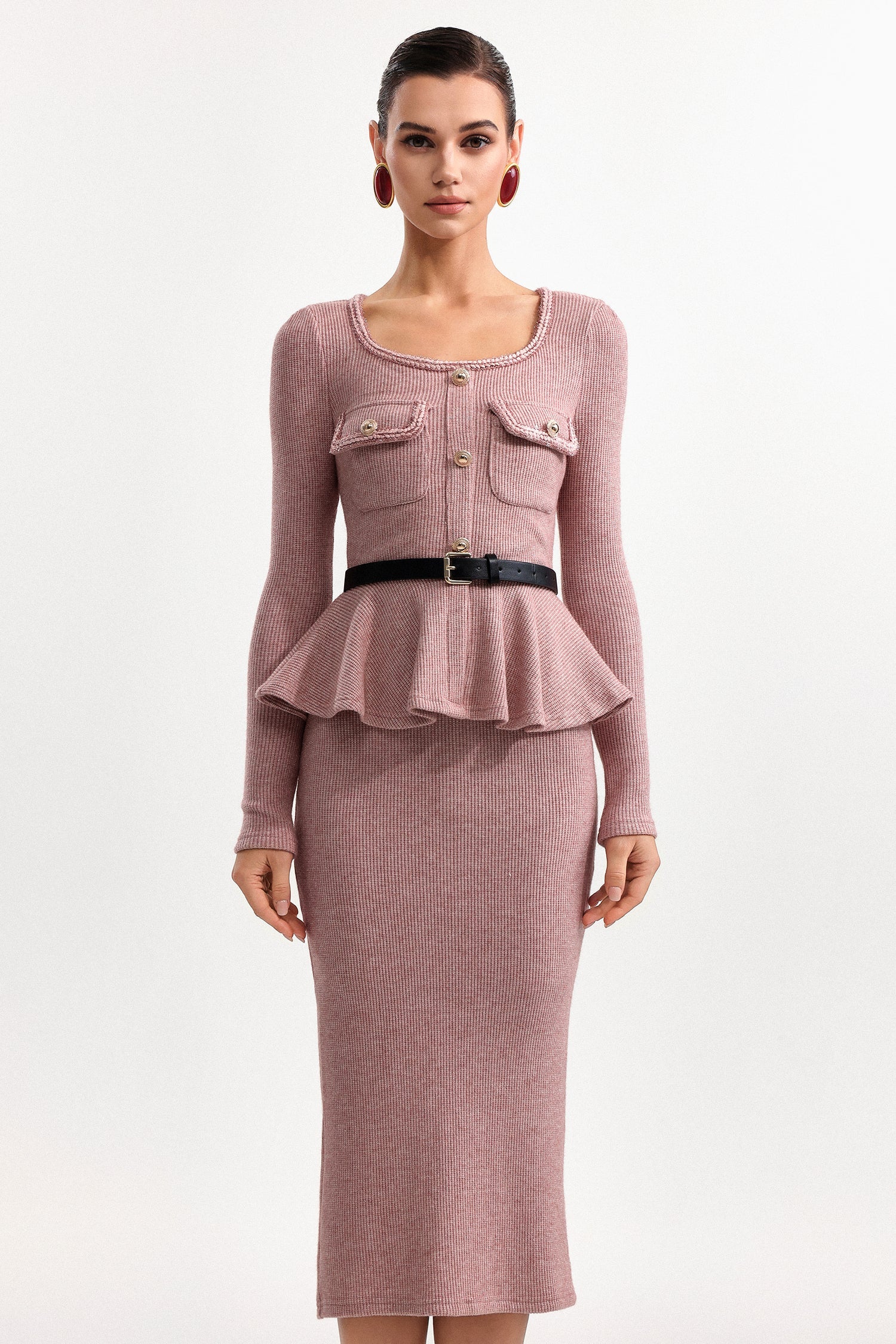 kitty U Neck Long Sleeve Falbala Knit Midi Dress in pink - S está en espera y se enviará tan pronto como vuelva a estar en stock