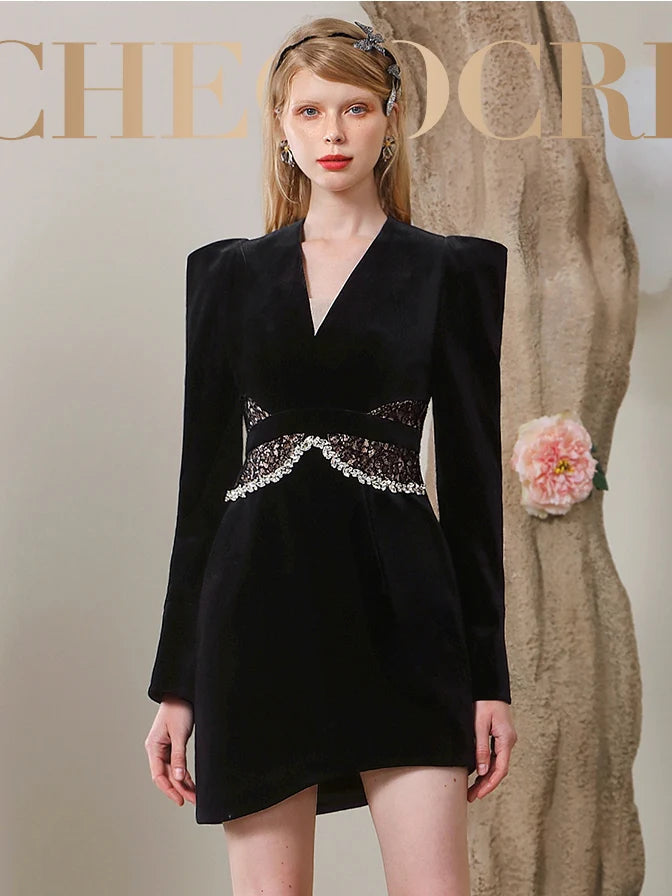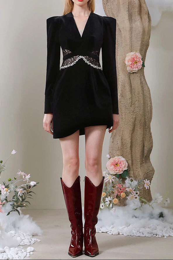 quintina black Lace V-Neck Asymmetry mini blazer dress