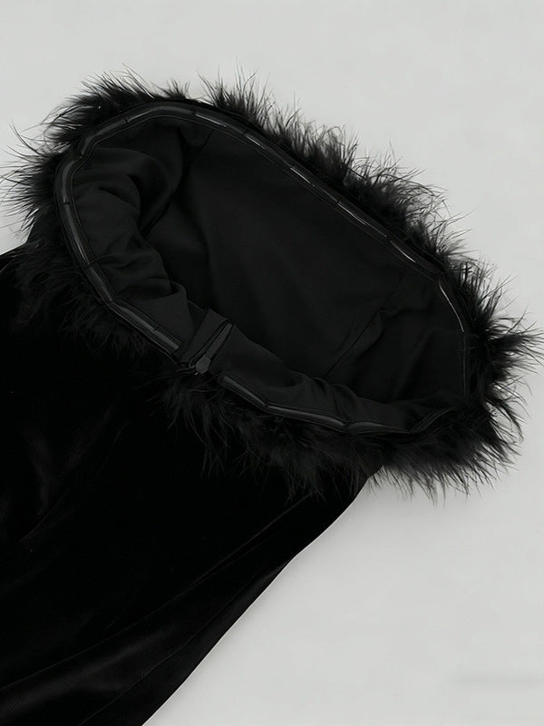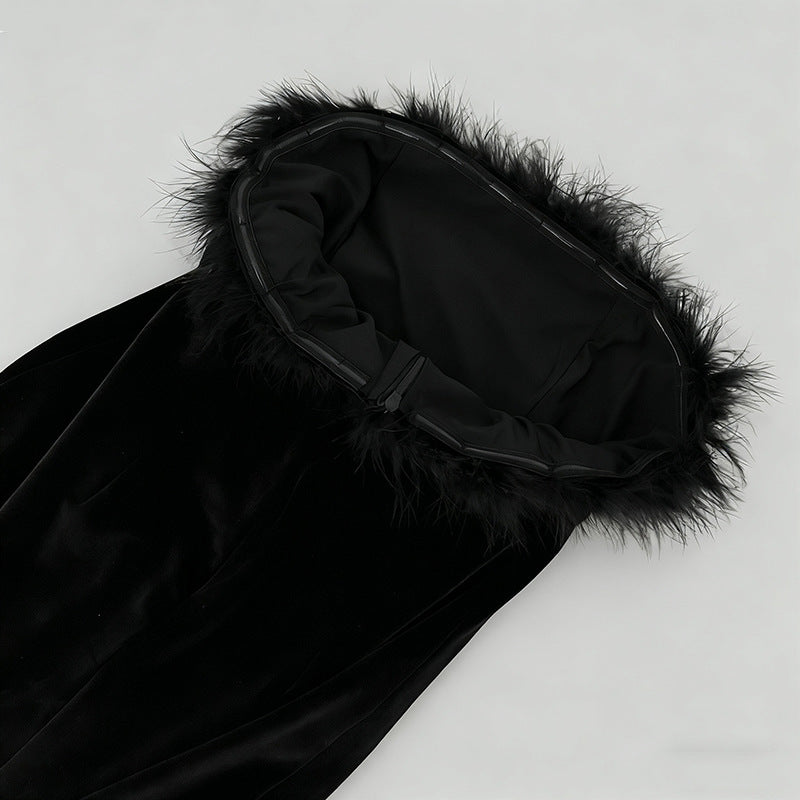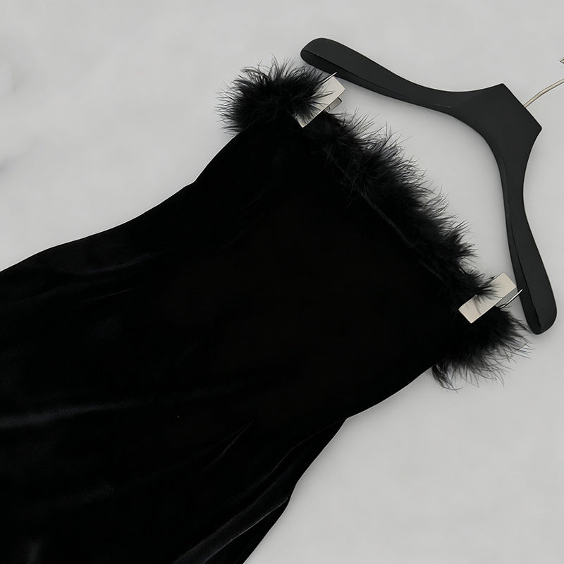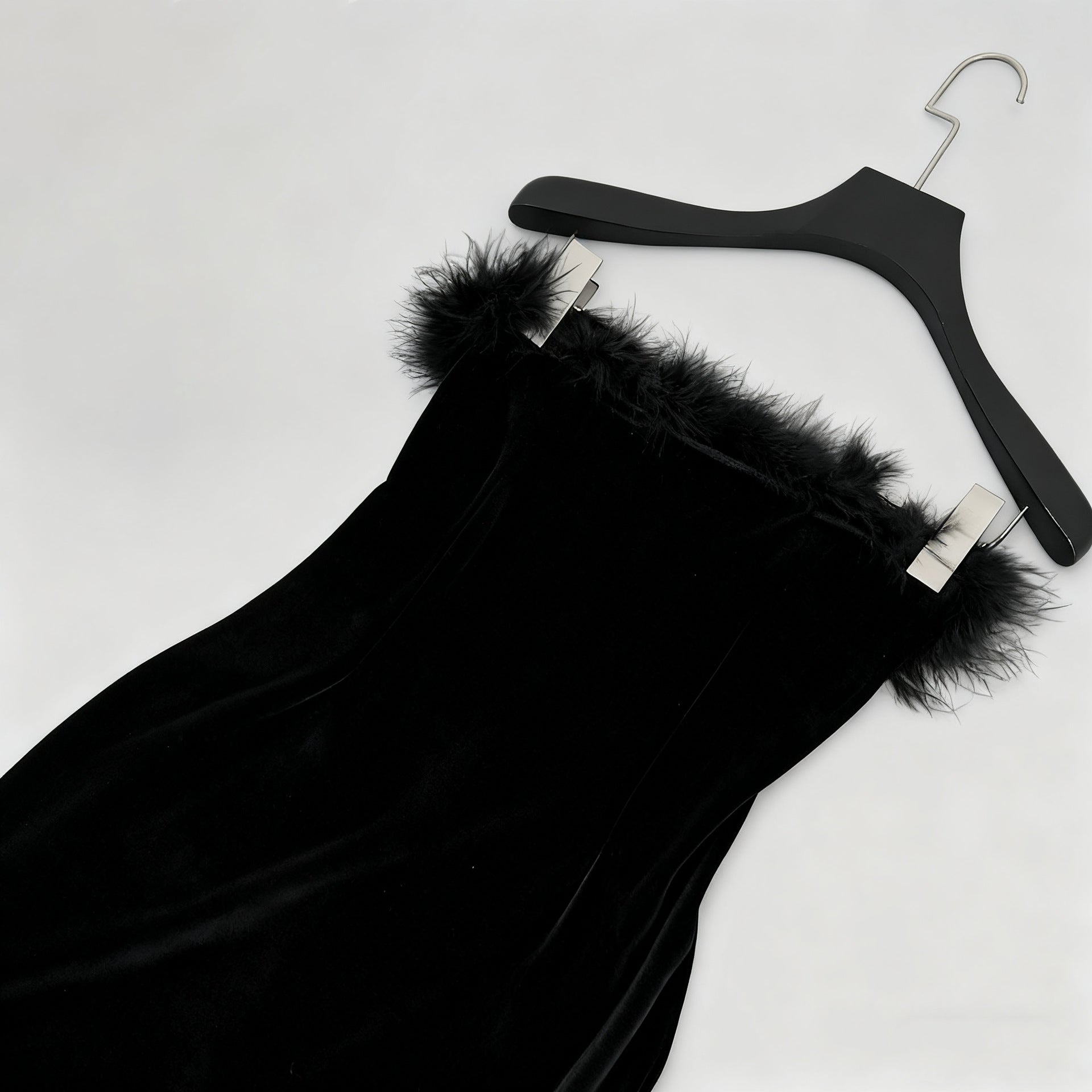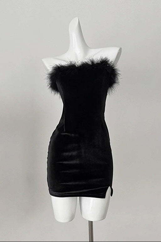 Elevate your evening with the Samantha feather velvet strapless mini dress in black. This sophisticated piece features luxurious velvet fabric that drapes beautifully, paired with delicate feather detailing for an unexpected touch of elegance. The strapless silhouette creates a refined, modern look perfect for cocktail events or upscale occasions. The mini length offers a contemporary edge while maintaining timeless appeal. Crafted for those who appreciate refined craftsmanship and distinctive design, this dress makes a confident statement without compromising on comfort or style.