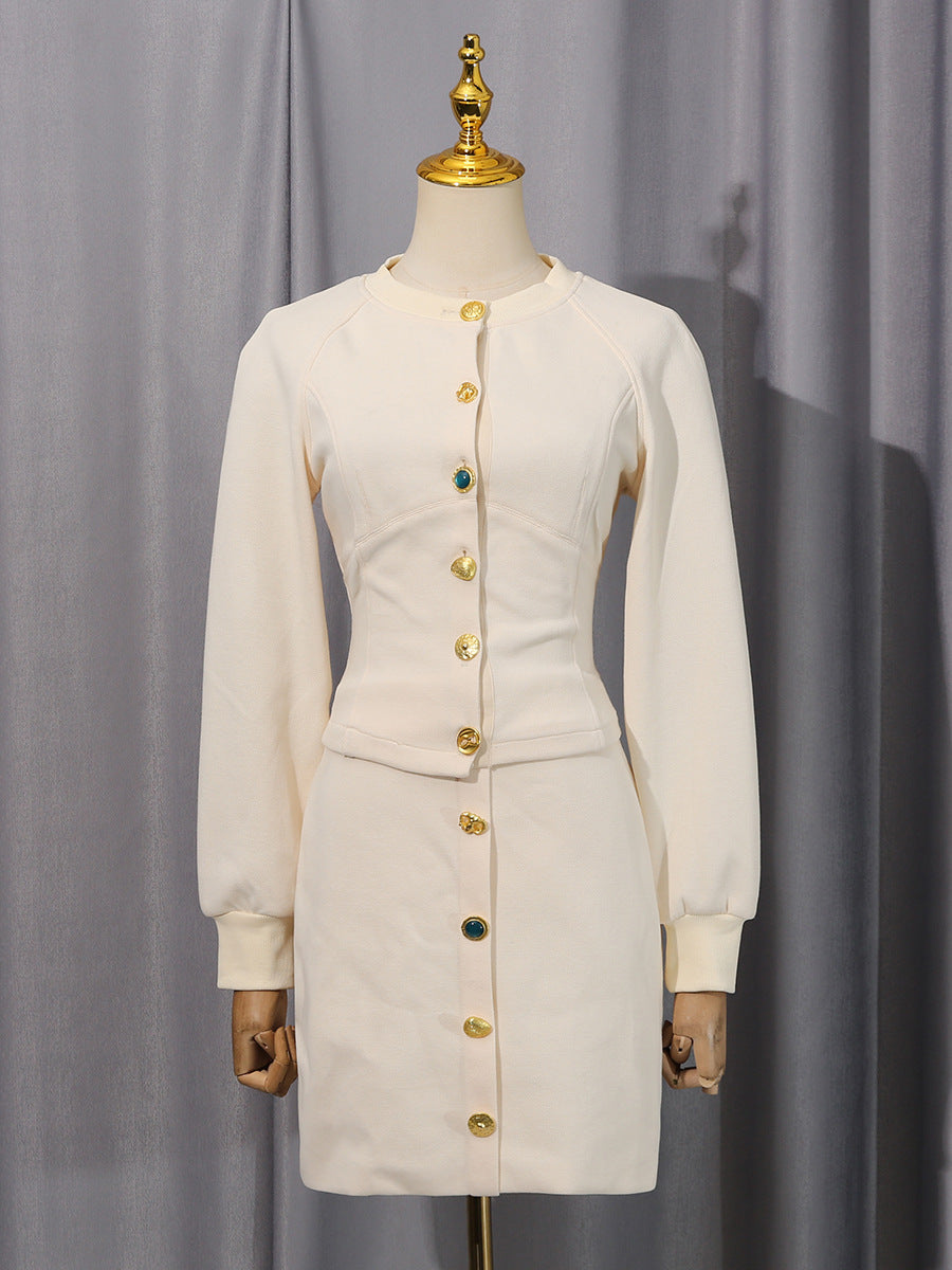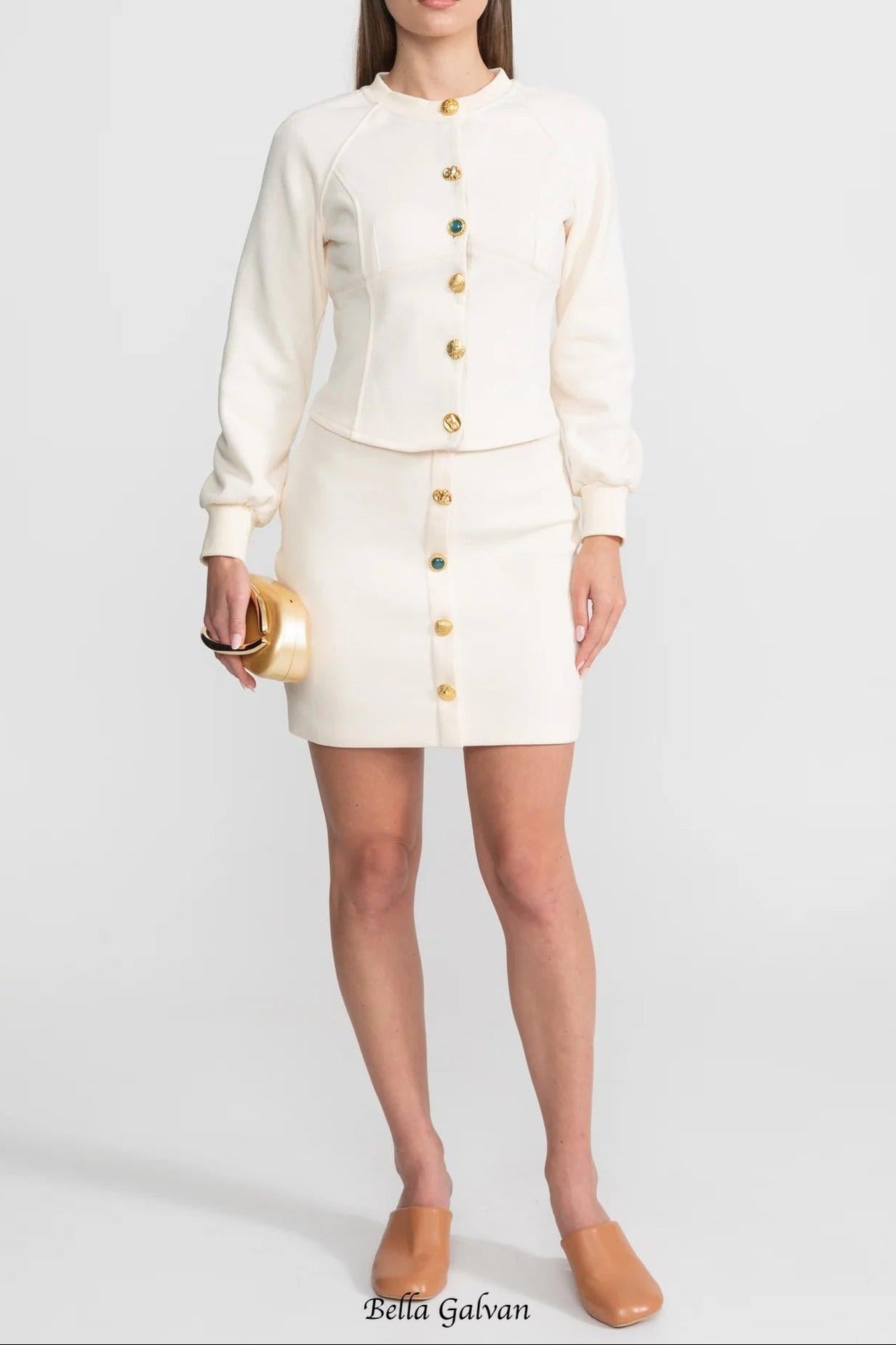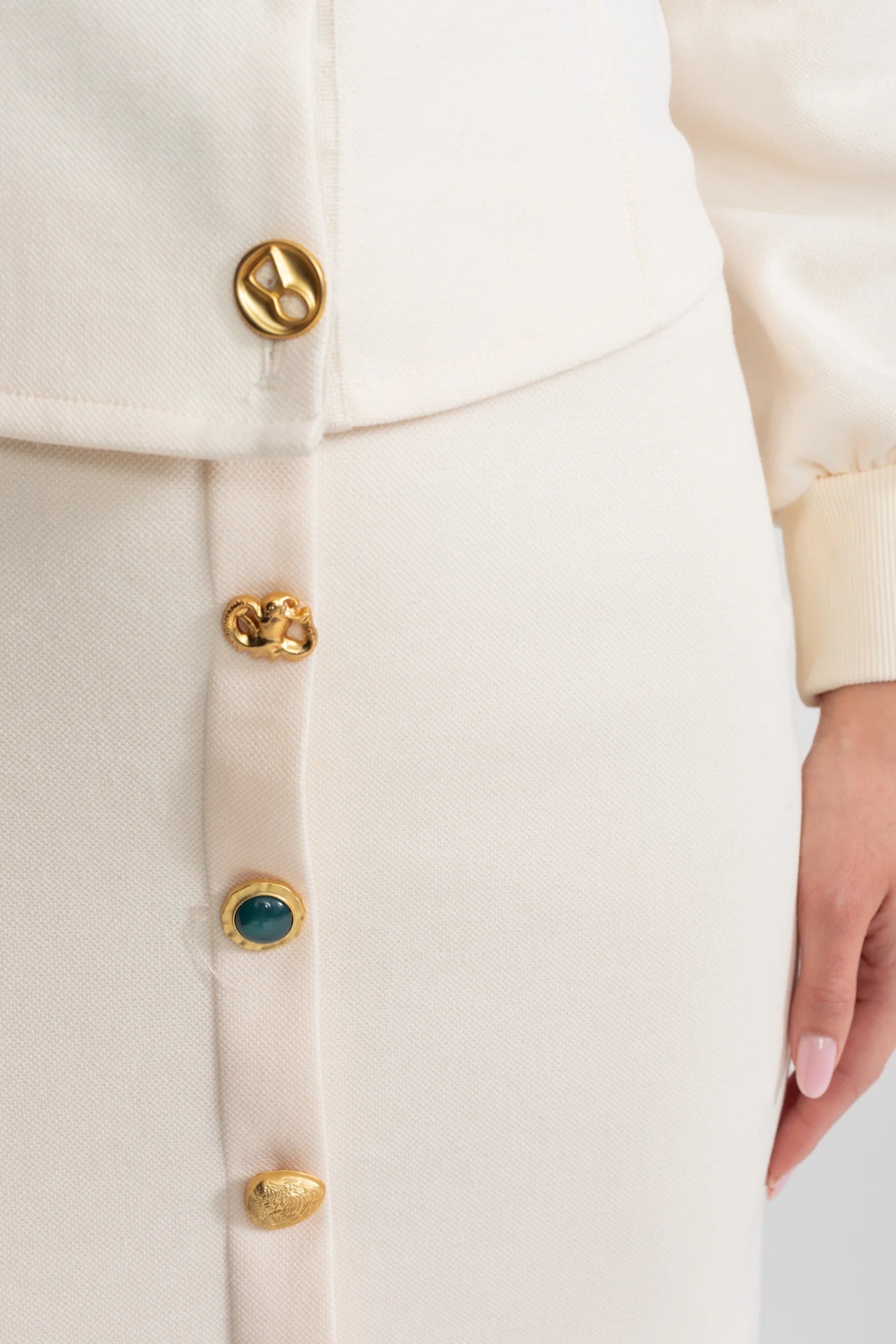 The tabitha Embellished Button Co-ord Set in Ivoire combines refined elegance with contemporary design. This coordinated two-piece ensemble features meticulously placed embellished buttons that elevate the aesthetic, creating a polished look suitable for both professional and social occasions. Crafted with attention to detail, the ivoire tone offers versatility and sophistication, pairing effortlessly with existing wardrobes. The coordinated silhouette ensures a cohesive, intentional appearance while maintaining individual styling flexibility. An investment piece that delivers both visual impact and wearable sophistication.