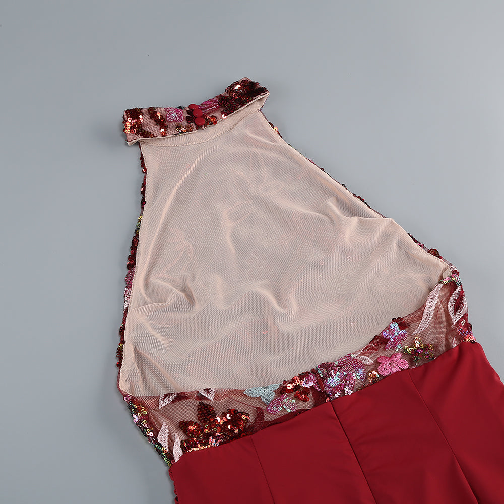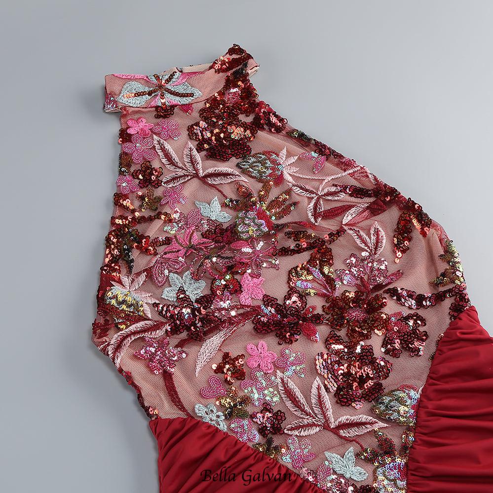 Unleash your inner glam with our Tracy Sequin Embroidery Halter Maxi Dress in Red. Stunningly crafted with intricate sequin embroidery, this dress is perfect for any special occasion. With a halter neckline and maxi length, it will keep you looking and feeling elegant all night long.