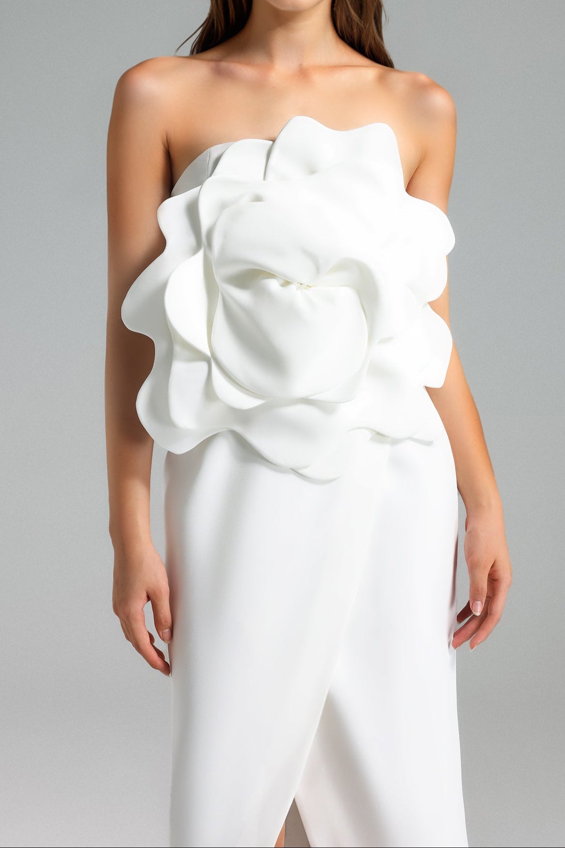 Valery 3d Flower Slit Midi Dress - White - S está en espera y se enviará tan pronto como vuelva a estar en stock