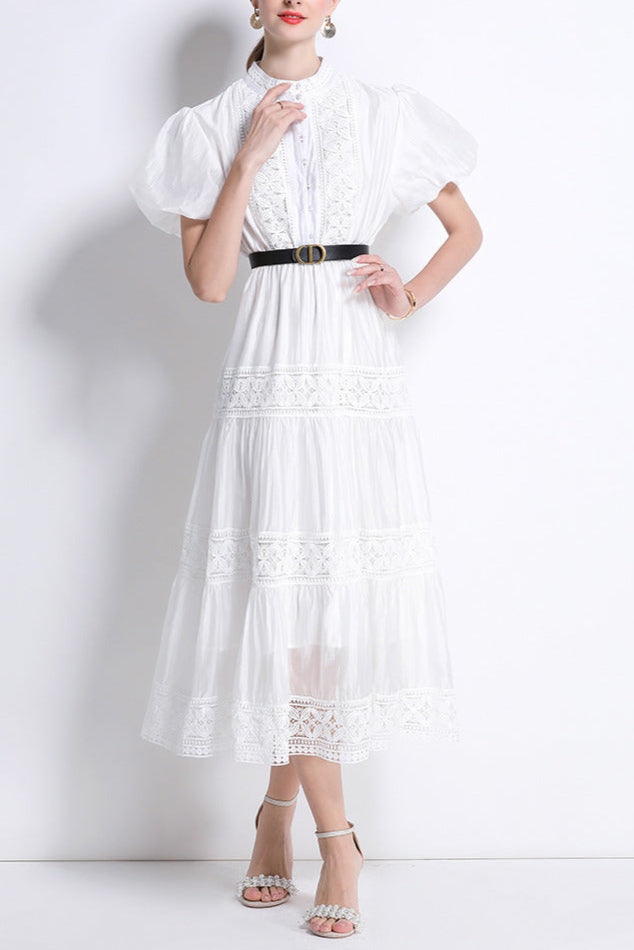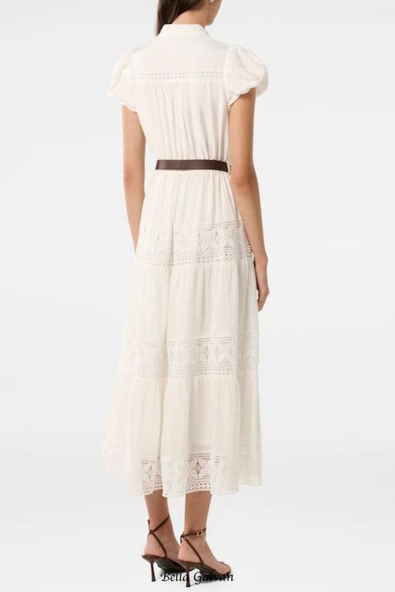 Elevate your wardrobe with the White Adelaide Lace Belted Trim Midi Dress, a refined choice for occasions requiring elegance and subtle sophistication. Crafted from delicate lace, this midi-length dress features a tailored belt that defines the waist, enhancing silhouette and providing a flattering fit. The intricate lace detailing and refined trim add texture and depth, making it versatile for both daytime events and evening gatherings. Designed with both style and comfort in mind, this dress offers an expert blend of classic charm and modern structure.