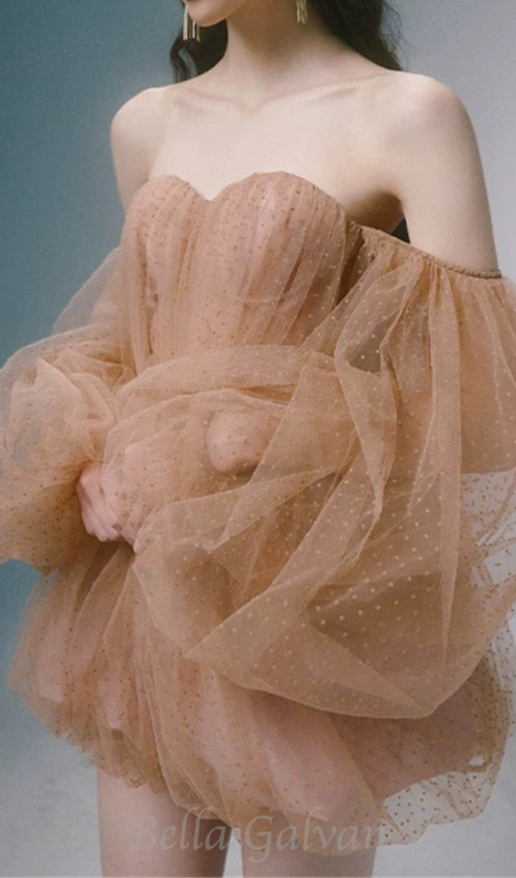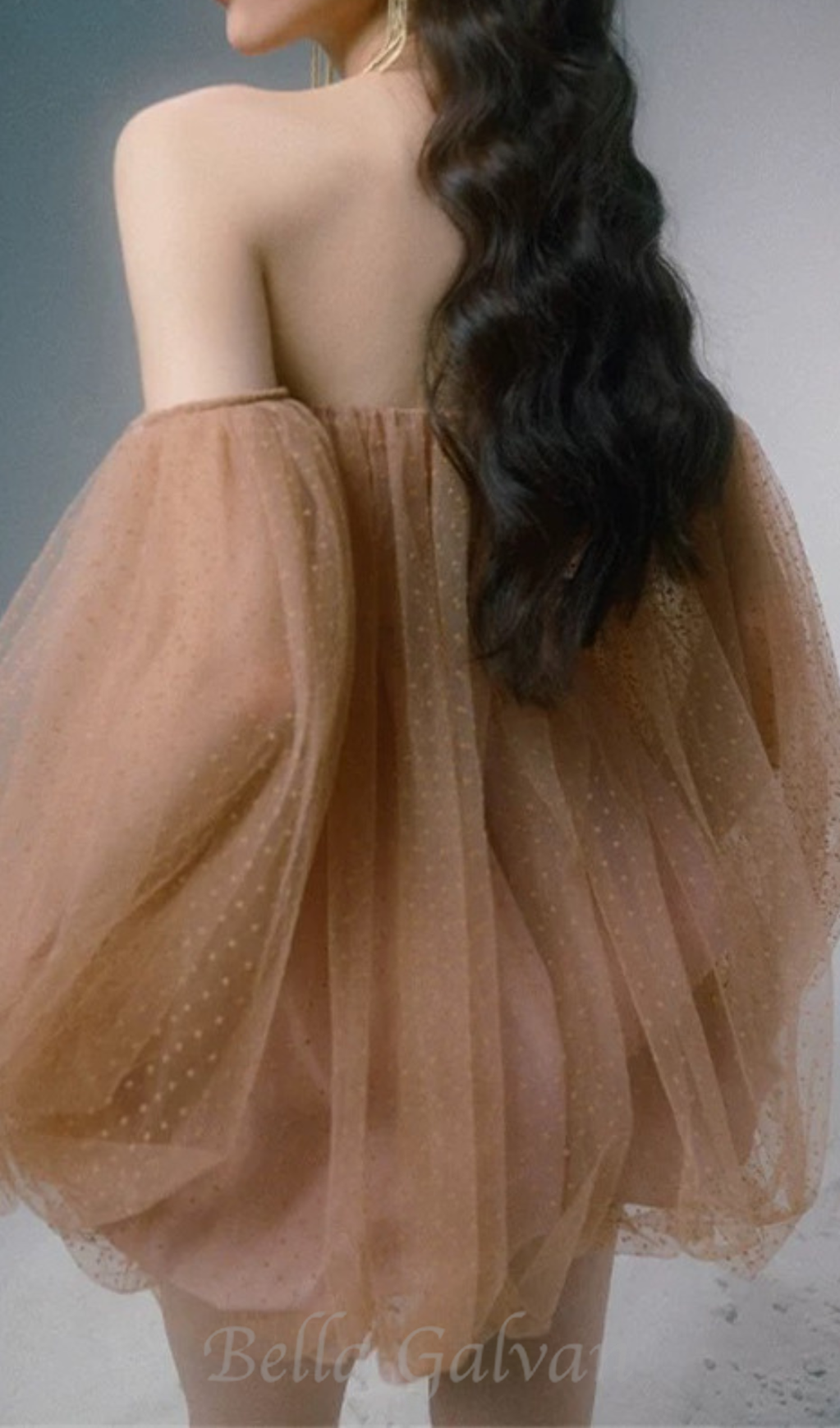 The winni strapless mesh mini dress in kahki features a figure-flattering design and breathable mesh material, perfect for any special occasion. With its strapless neckline and mini length, this dress exudes elegance and sophistication. Crafted with the highest quality materials, this dress will make you stand out and feel confident.