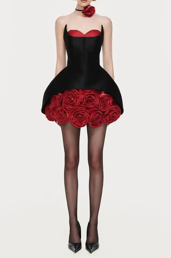 helen 3D Flower Chiffon Ruffle Mini Dress in pink