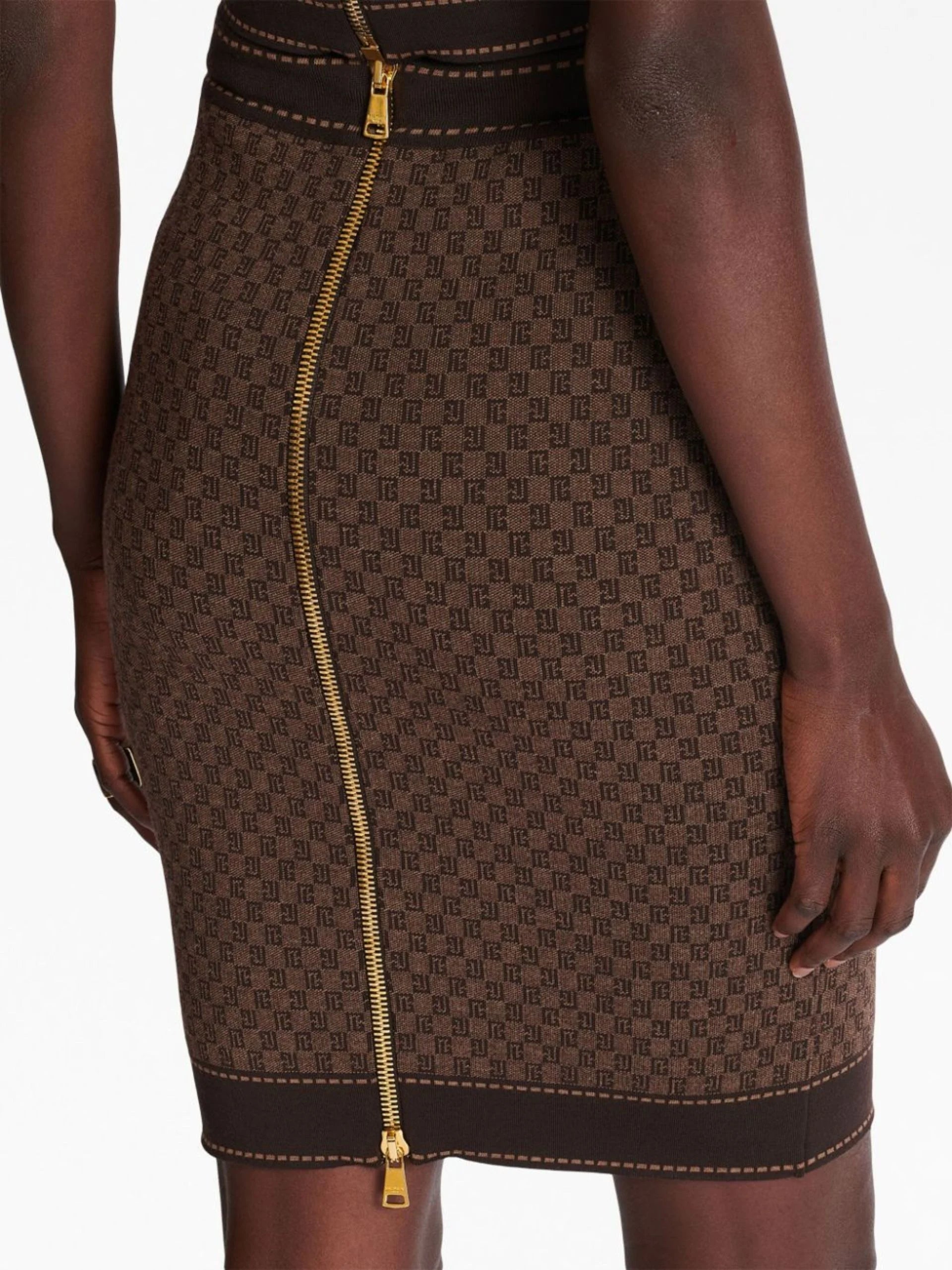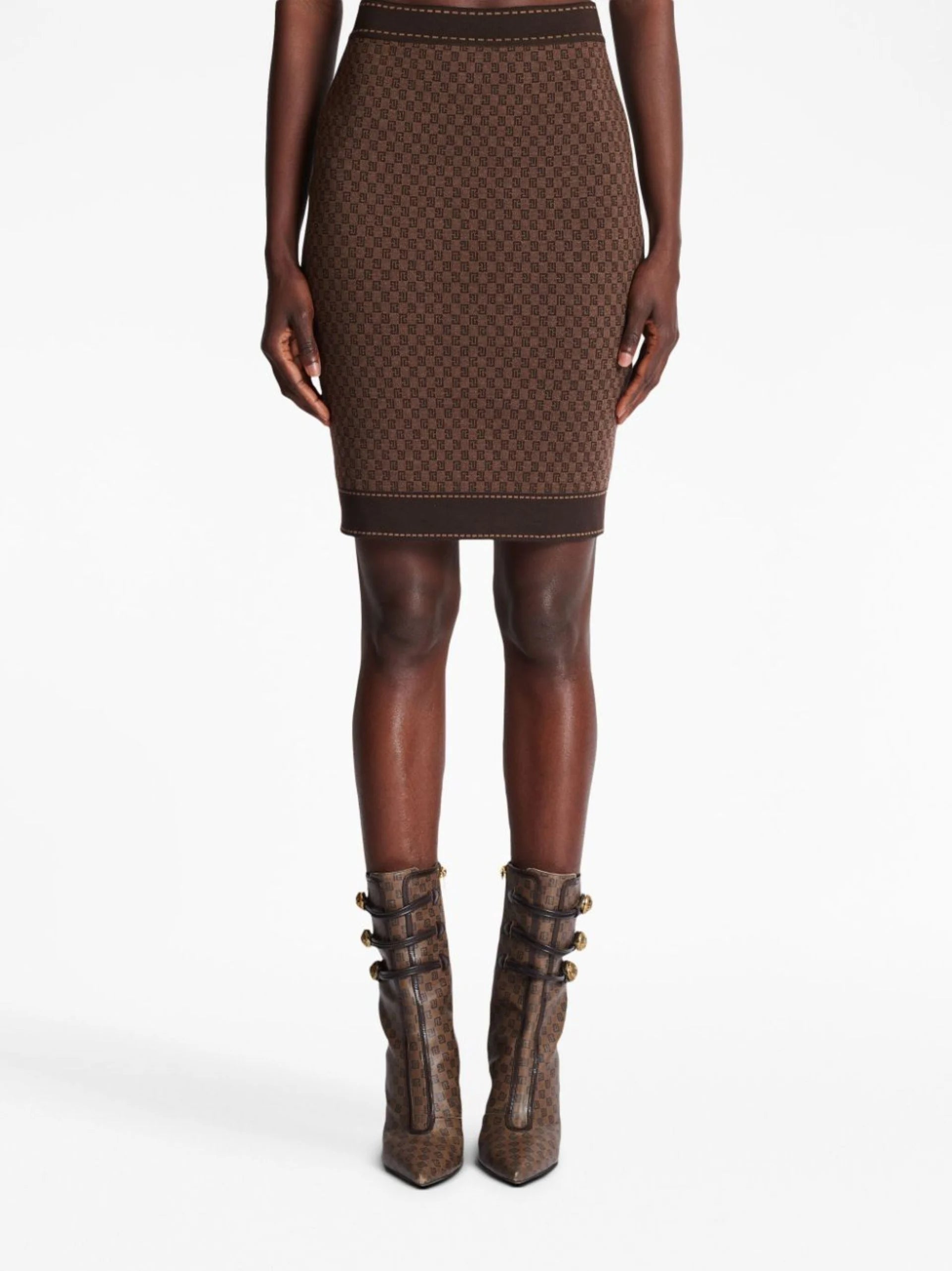 BROWN MONOGRAM-JACQUARD WOOL-BLEND SKIRT