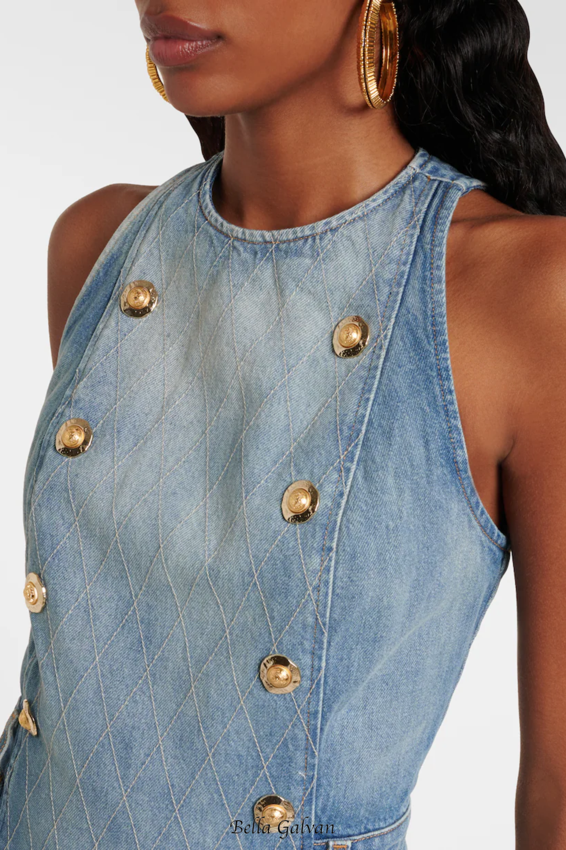 Elevate your wardrobe with the Denim Sleeveless Flared Mini Dress, a refined blend of classic denim and modern design. Its sleeveless cut and flared silhouette create a graceful, flattering shape perfect for both casual outings and chic occasions. Crafted for comfort and style, this mini dress offers effortless sophistication with a timeless edge.