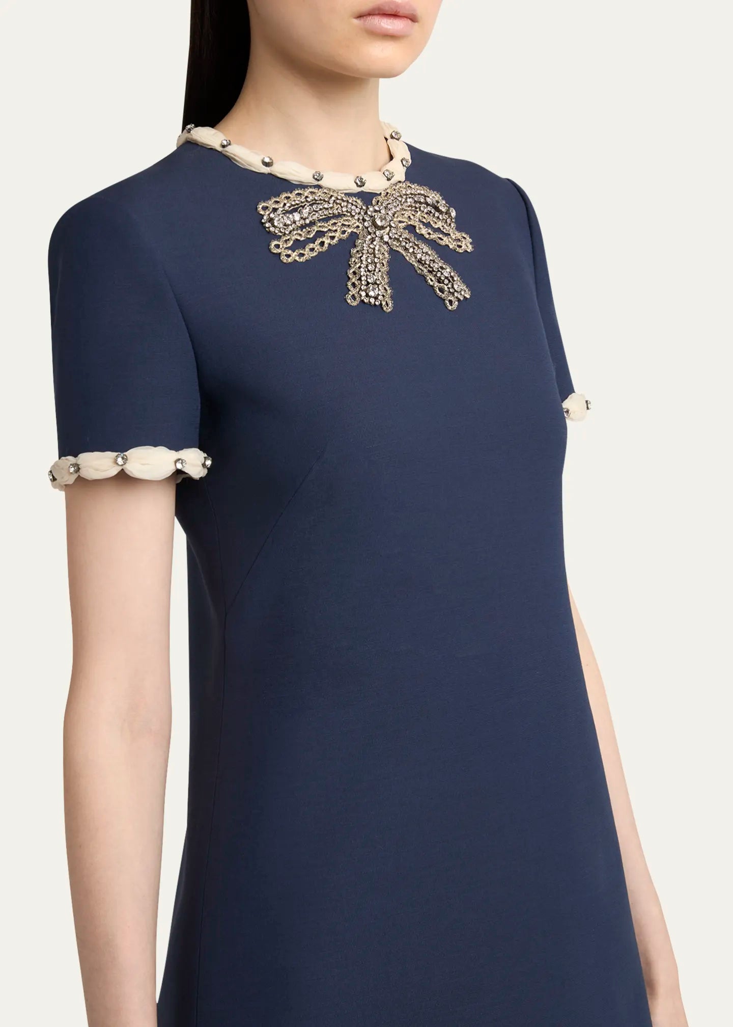 jocelyn rhinestone Embroidered Crepe mini Dress in navy blue