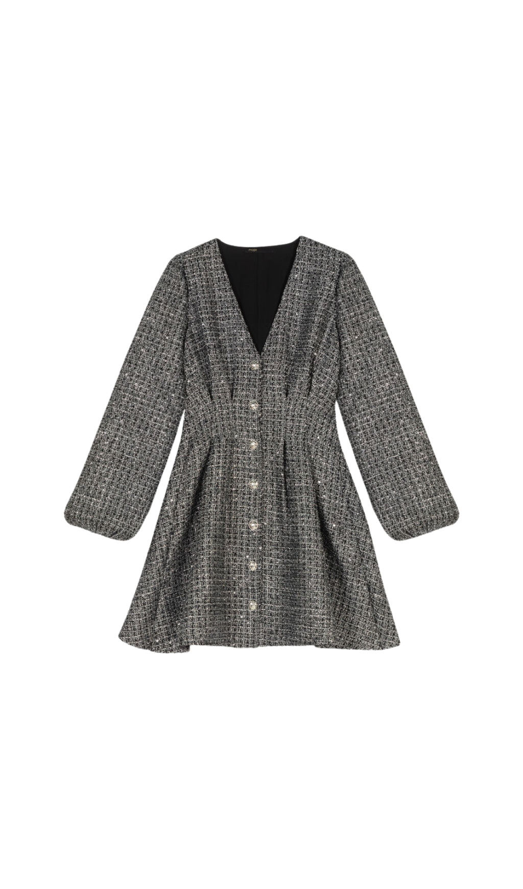 This dazzling dress will have you turning heads all night long with its long sleeves and sparkling sequins. Perfect for a night out on the town or a special occasion, this dress will make you the life of the party. Get ready to sparkle and have some fun!"