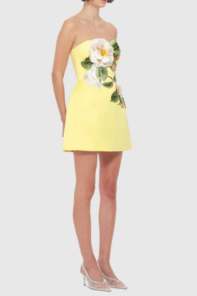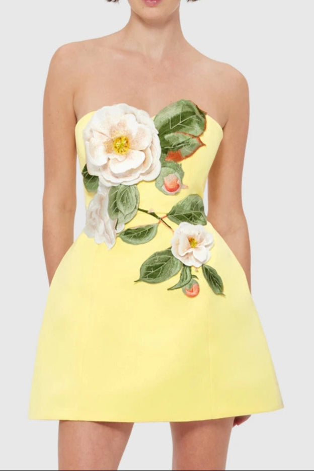 suzanne Appliqué Floral Bustier Mini Dress in yellow