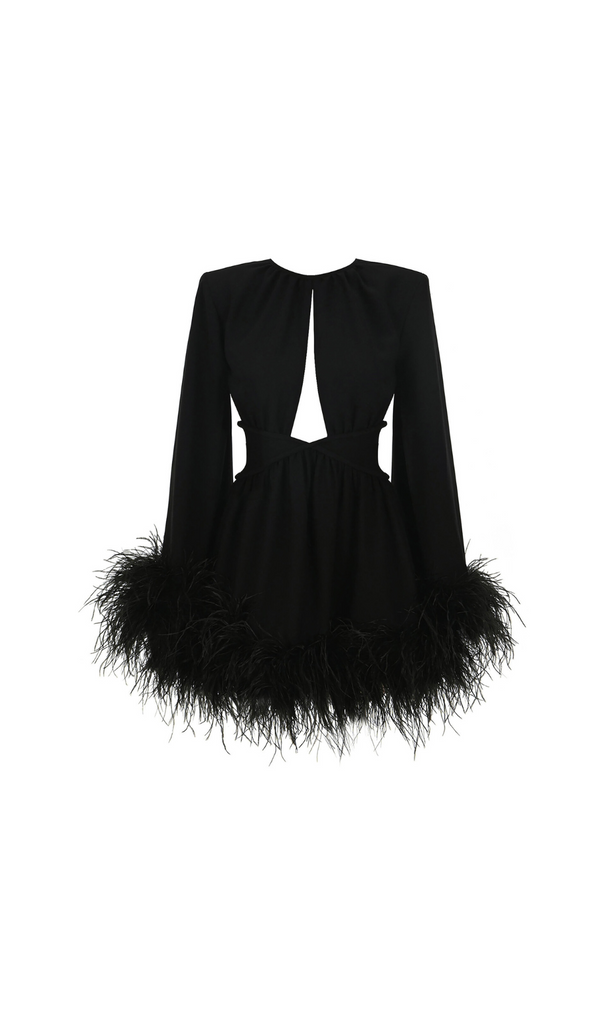 GAROTIS LONG SLEEVE CRYSTAL FEATHER DRESS