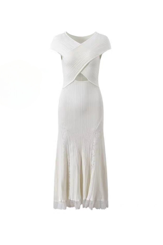 roberta white Asymmetric appliqué halter sleeveless midi dress