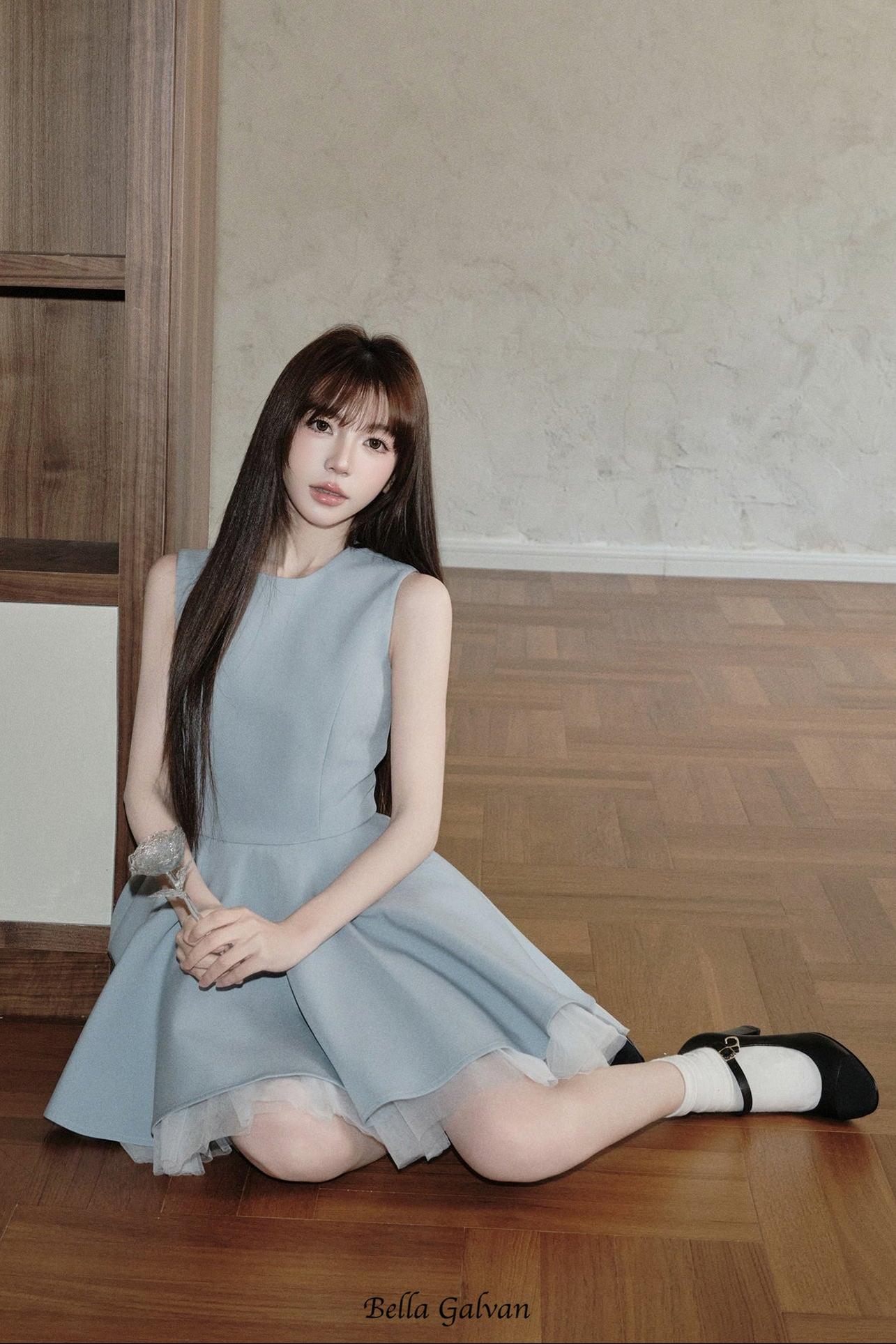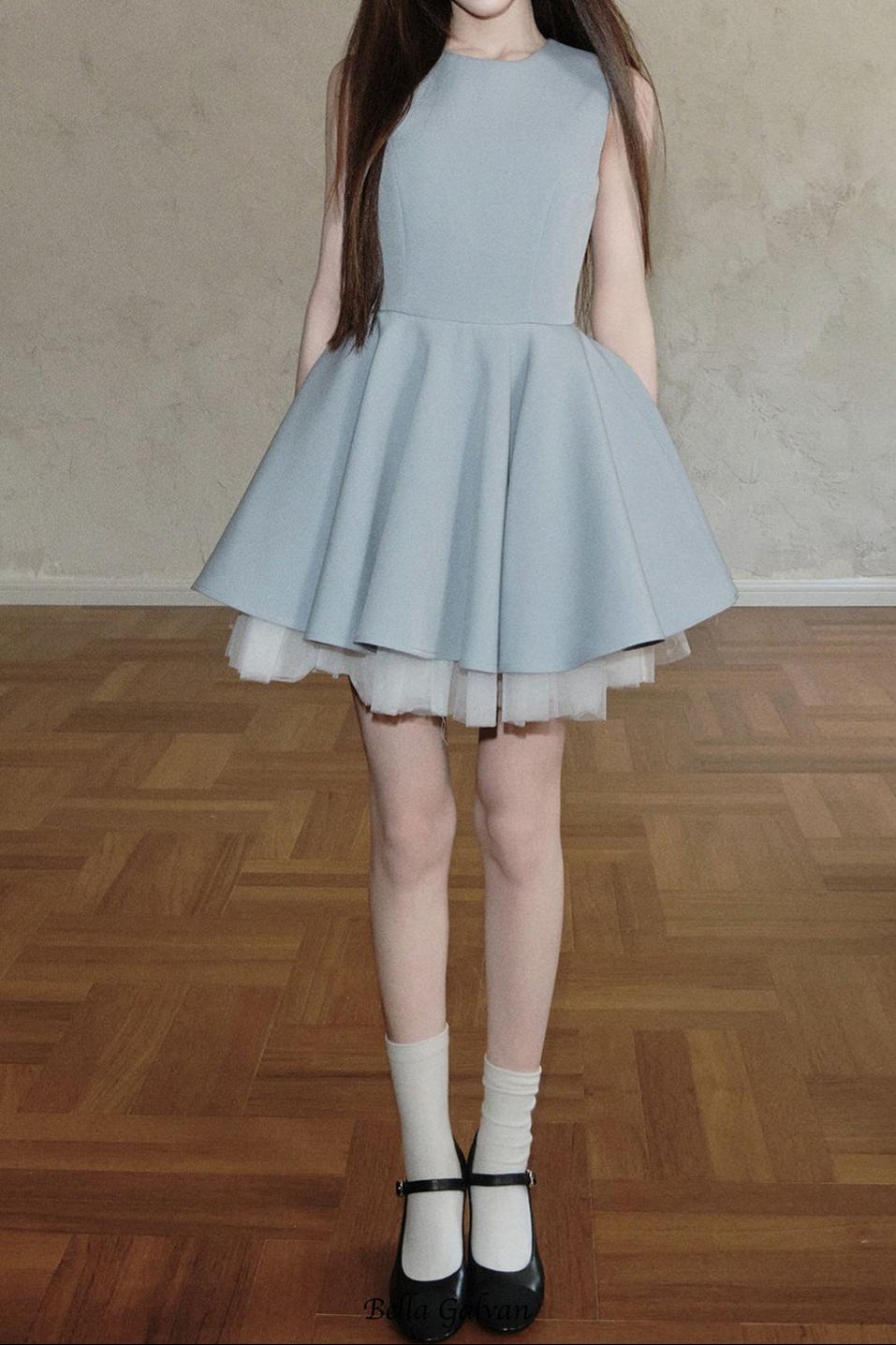 This carol mesh stitching sleeveless tutu dress in blue is a perfect blend of style and comfort. The mesh stitching adds a touch of elegance while the sleeveless design keeps you cool and comfortable. The tutu dress adds a fun and whimsical element to your wardrobe. Perfect for any occasion, this dress is a must-have.
