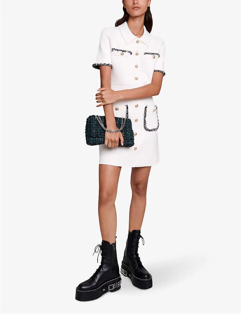 model measurements: 5'10" height, 33" bust, 26" waist, 35.5" hips, wearing a maje size 1 or 36