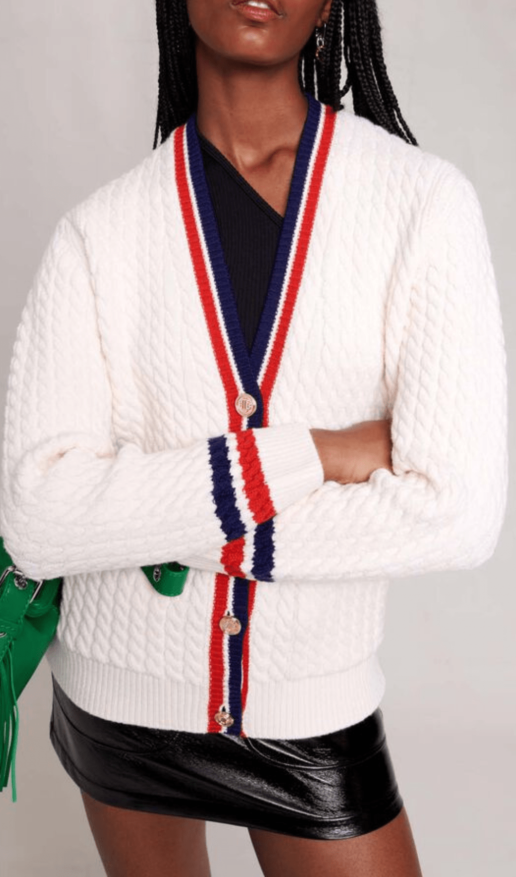 With its cozy cable knit design, this cardigan is perfect for staying warm and stylish. Throw it on and take on any adventure with confidence!"