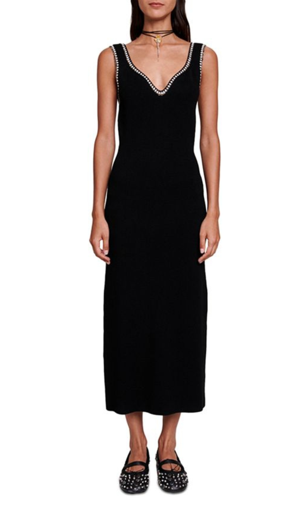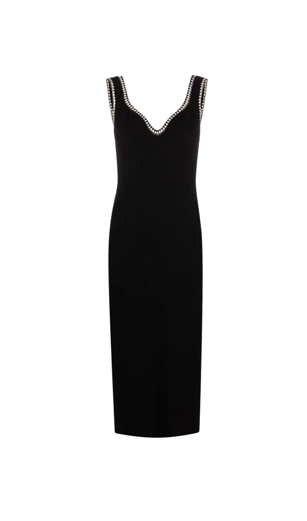 CHAIN-TRIM RIBBED-KNIT DRESS