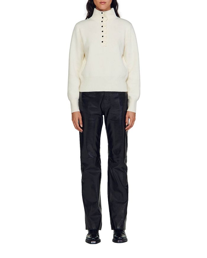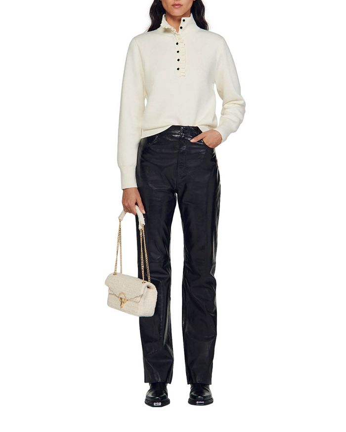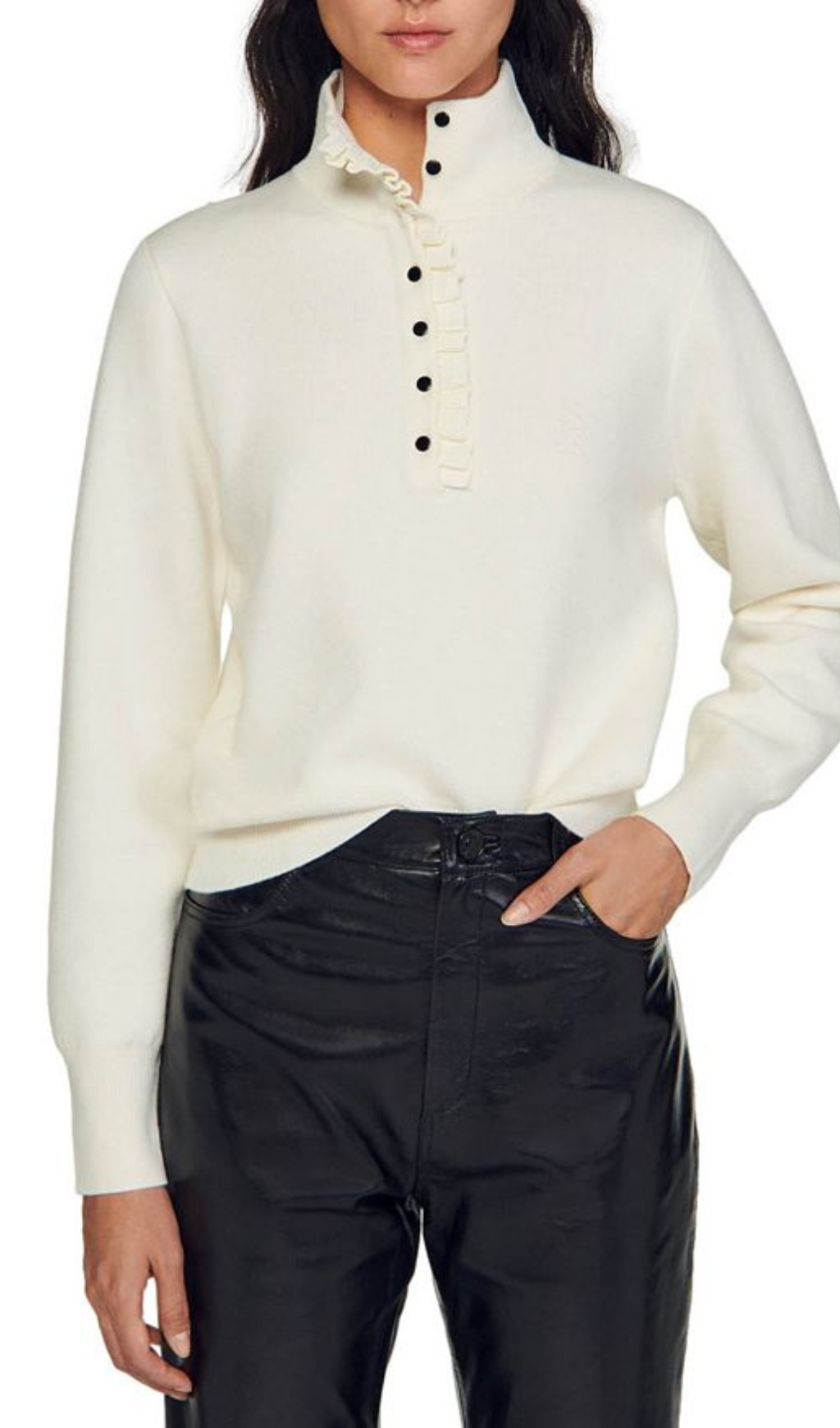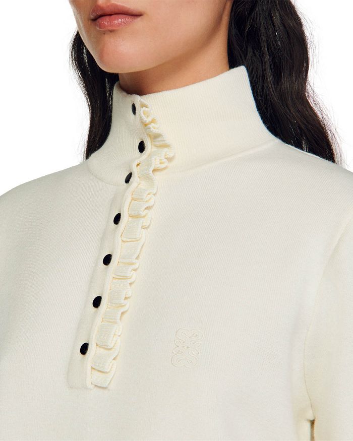 - Main fabric: 47% acrylic/44% wool/9% polyamide; rib: 43% acrylic/42% wool/15% polyamide; embroidery: 100% polyester; ruffle: 64% viscose/36% polyamide