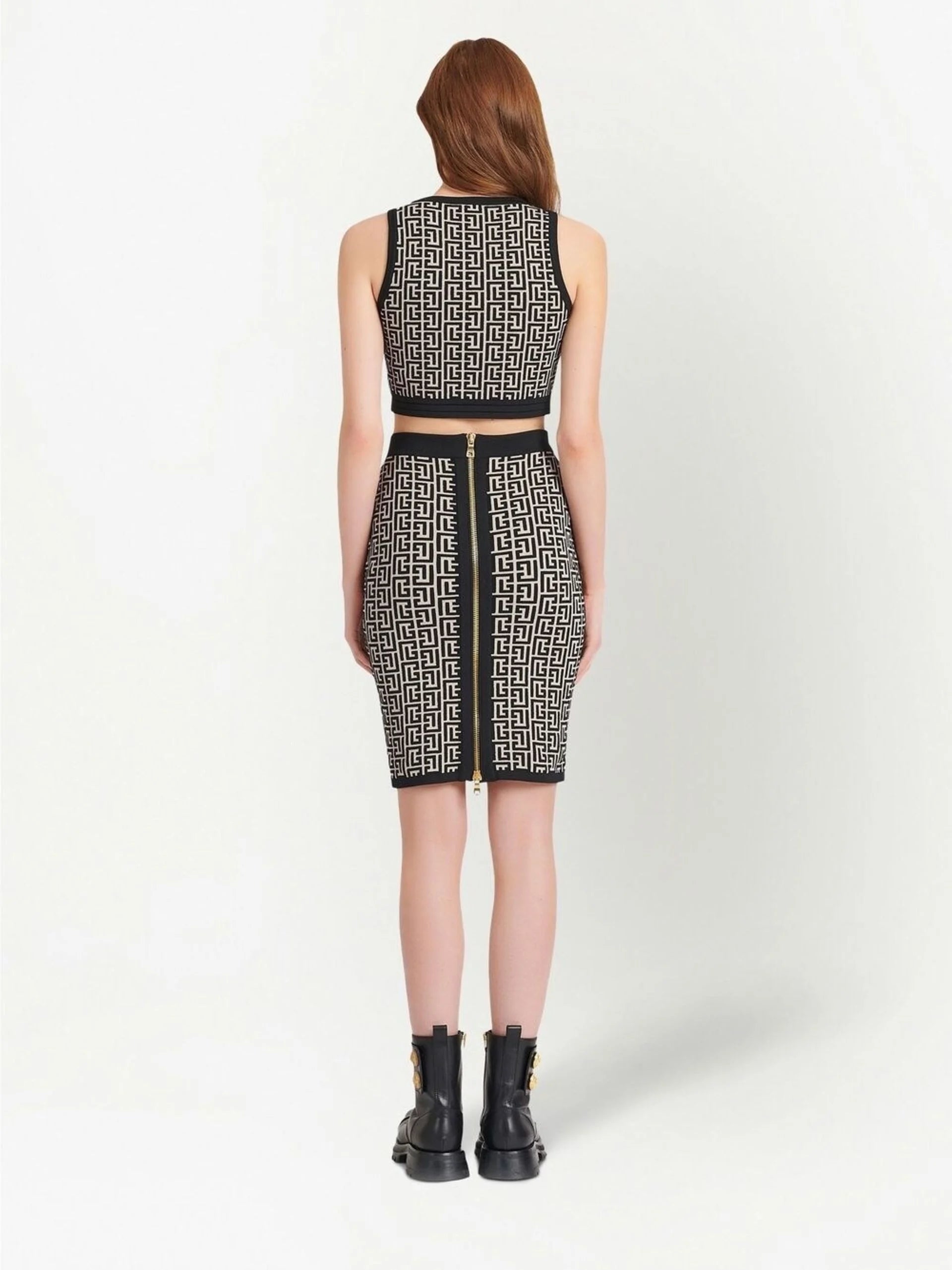 the effortlessly stylish top that combines monogram-patterned fabric with a trendy cropped design. Perfect for adding a touch of playful glam to any outfit. Don't sacrifice comfort for fashion - get the best of both worlds with this top.