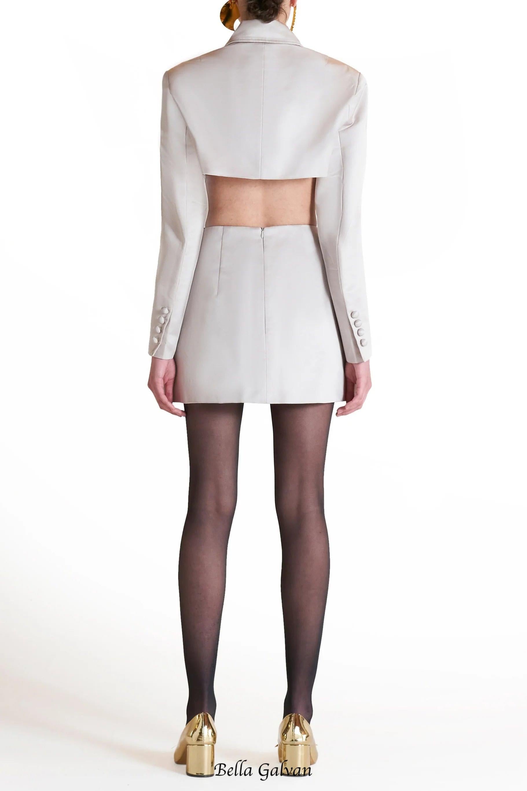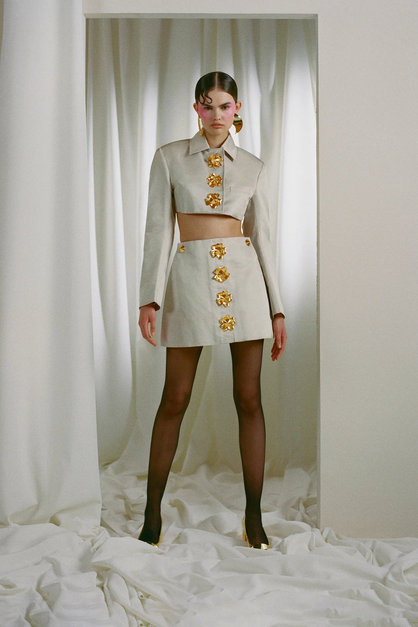 odelette Metal buttoned blazer skirt set in beige