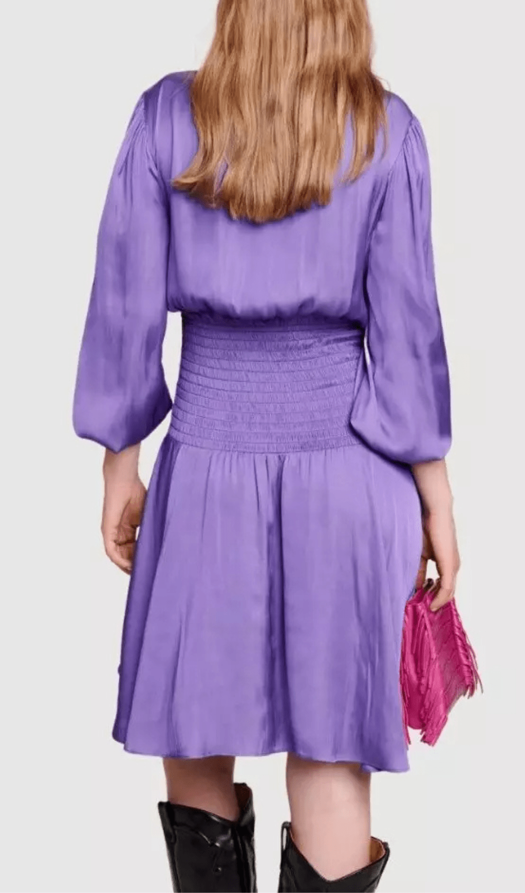 "Get ready to turn heads in this irresistibly cute dress! The purple color and smocked trim add a fun pop of uniqueness to your look. Perfect for any occasion, this dress is sure to make you stand out and feel confident. Don't miss out on this one-of-a-kind piece!"