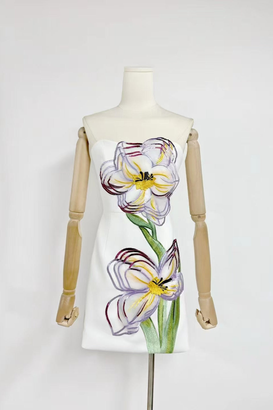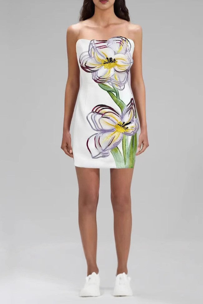 Rosario Appliqué Floral Bustier Mini Dress in white