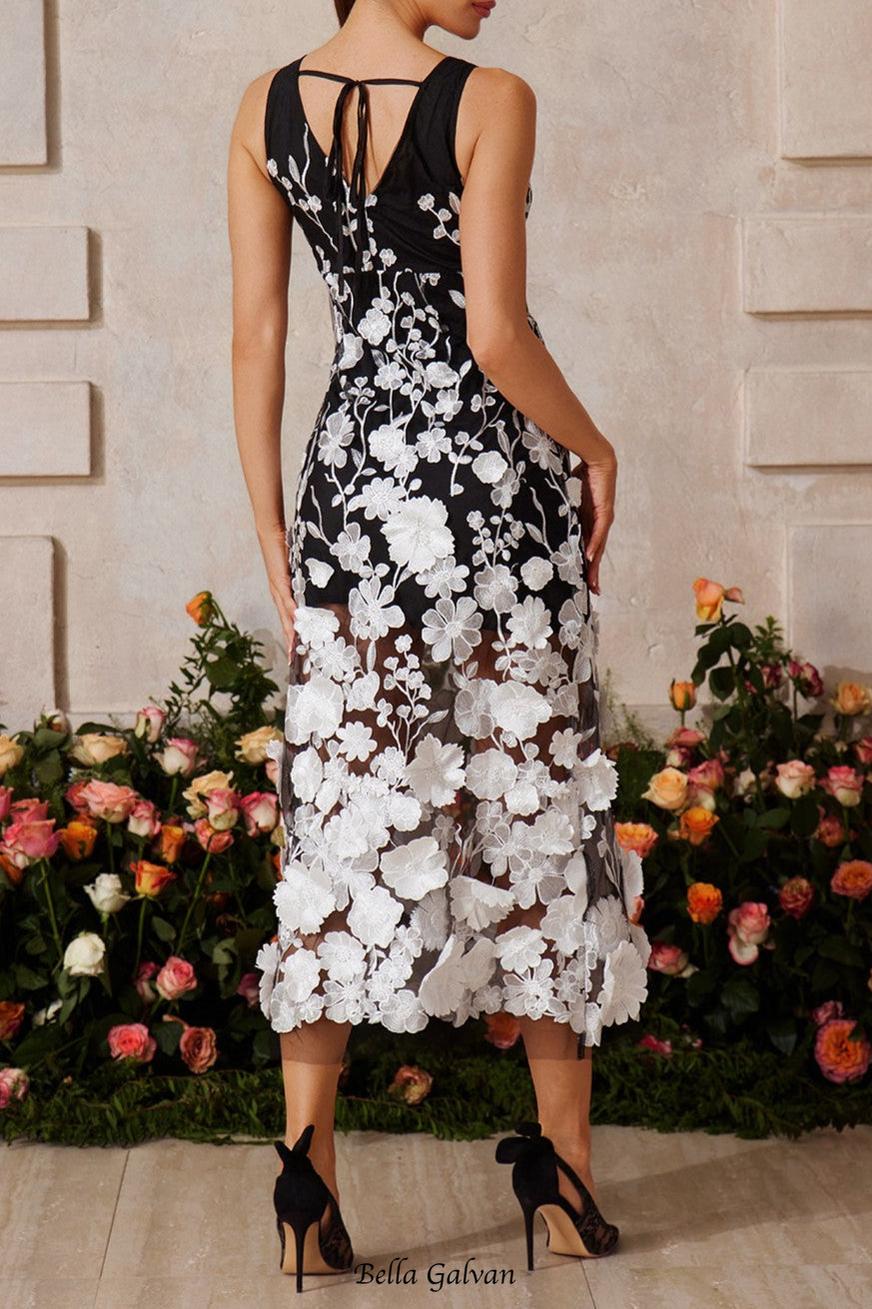 The Sarah V Neck Floral Embroidered Midi Dress in black combines elegant design with detailed craftsmanship. Featuring a flattering V neckline and intricate floral embroidery, this midi-length dress offers a refined silhouette suitable for both formal events and sophisticated everyday wear. Its tailored fit ensures comfort while highlighting natural curves, making it a timeless addition to any wardrobe.