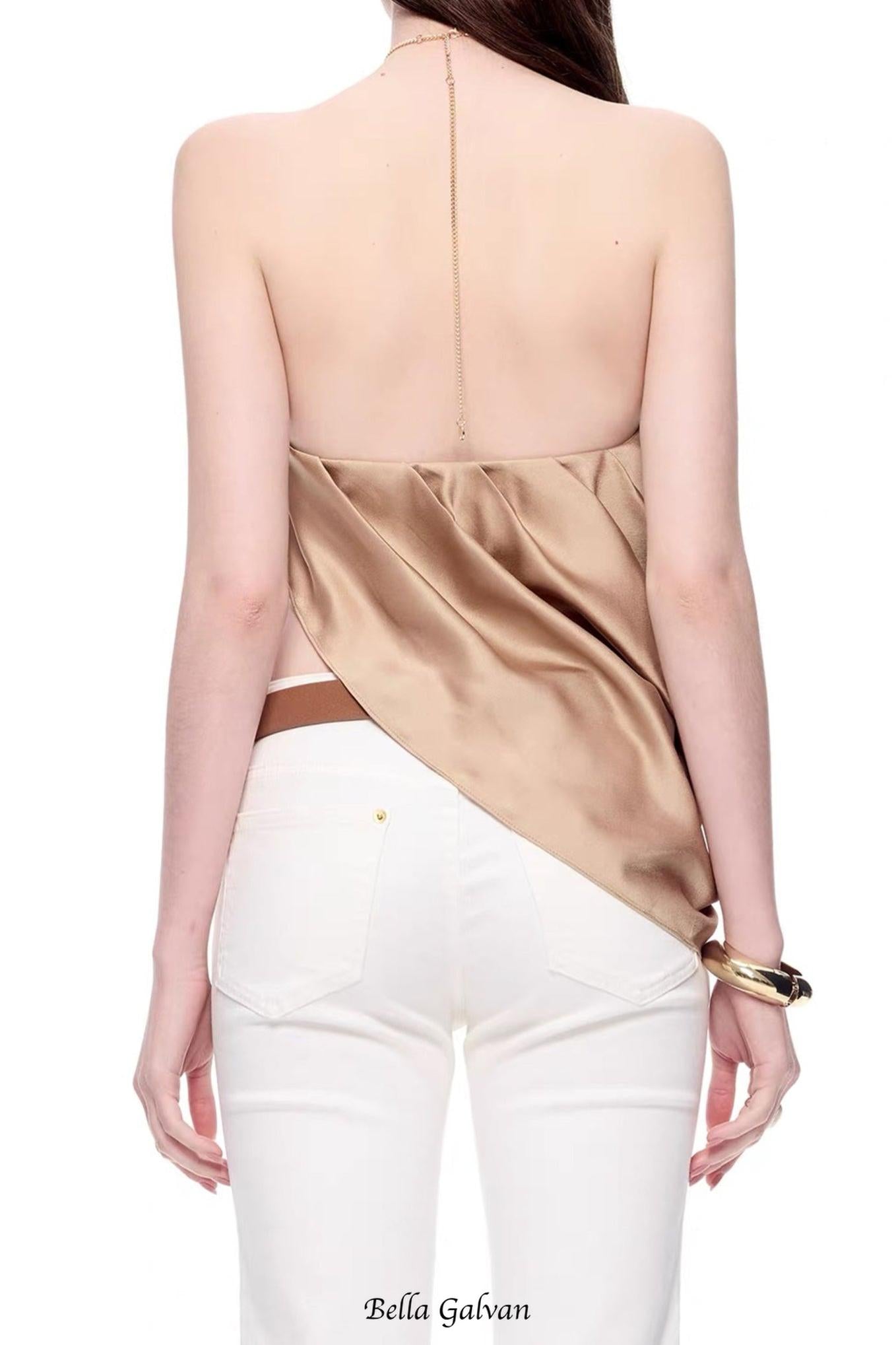 Elevate your evening attire with this sophisticated Satin Cowl Neck Halter Top. The luxurious satin fabric drapes elegantly across the décolletage, while the halter design showcases shoulders beautifully. This versatile piece transitions seamlessly from upscale dinners to cocktail events, offering both comfort and refined style. Pairs perfectly with tailored trousers or a sleek skirt for a polished ensemble.