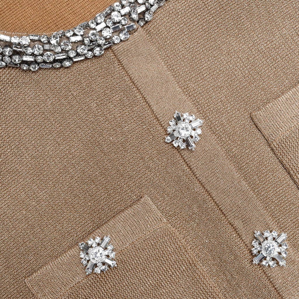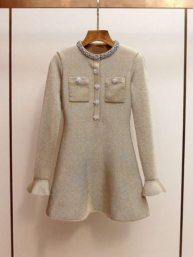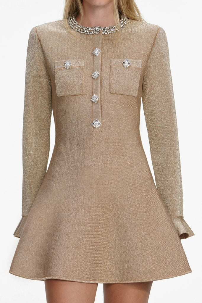phoenix Gold Crystal Trim Knit Mini Dress