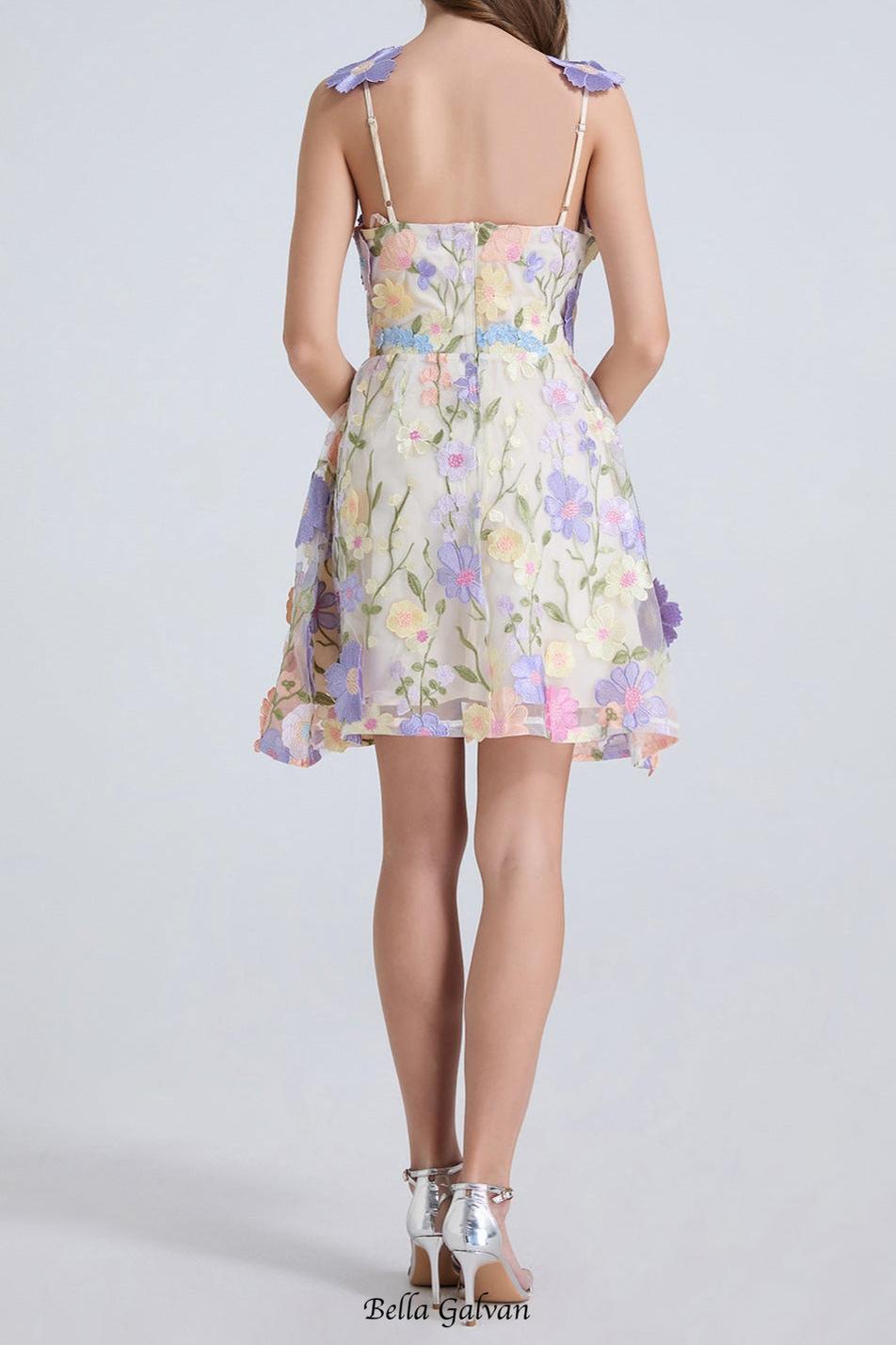 georgia 3d Floral Lace mini Dress in purple